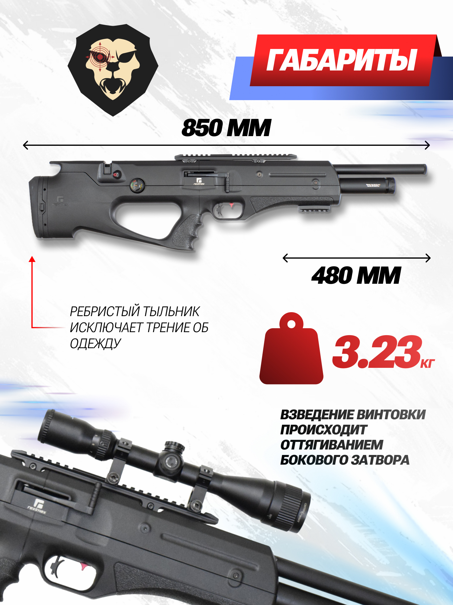 | Комплектация | Винтовка, магазин - 2 шт, однозарядный лоток, заправочный штуцер, упаковка, краткая документация, копия сертификата (по запросу покупателя) |