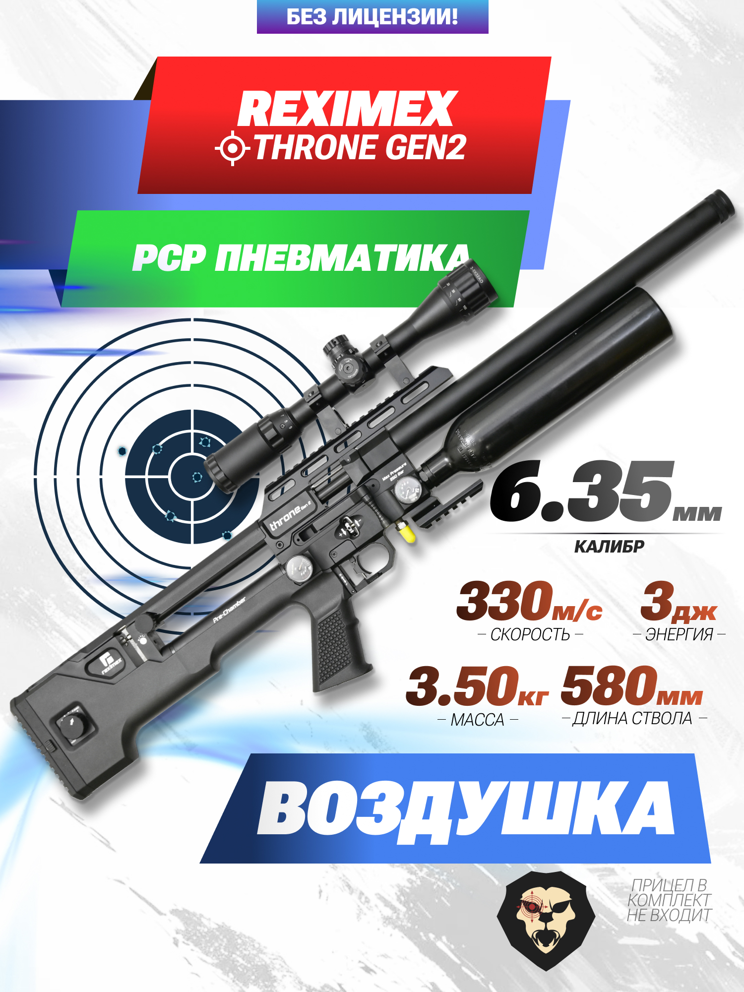 Пневматическая PCP винтовка Reximex Throne Gen2 6.35 мм (3 Дж, пластик) купить в интернет-магазине Popadiv10.