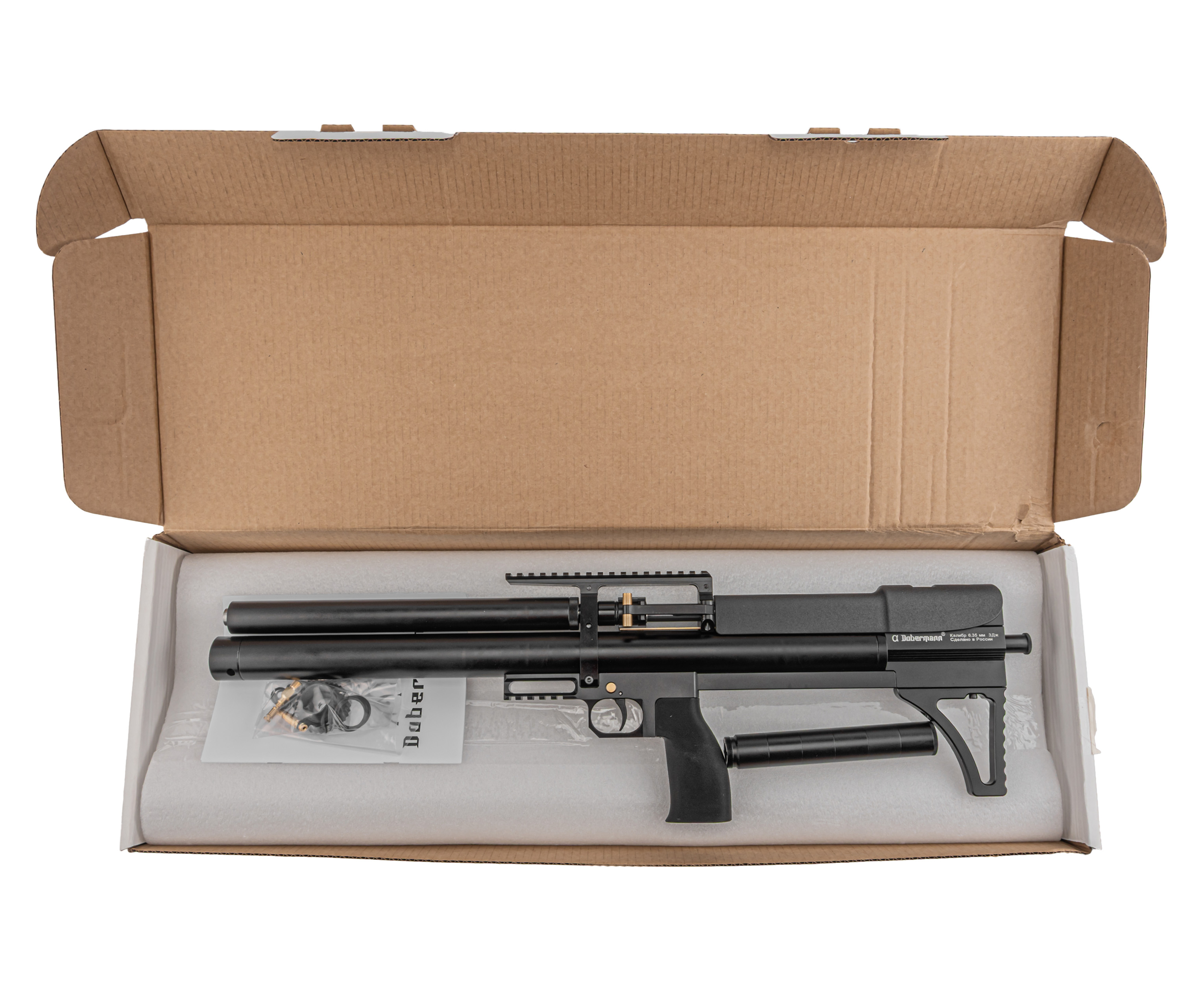 Альфа Доберман РСР снабдили прочным и вместительным резервуаром для накопления сжатого воздуха. Полезный объем при отсутствии редуктора составил 345 куб. см. В то же время емкость устойчива к заправке до 300 Бар.