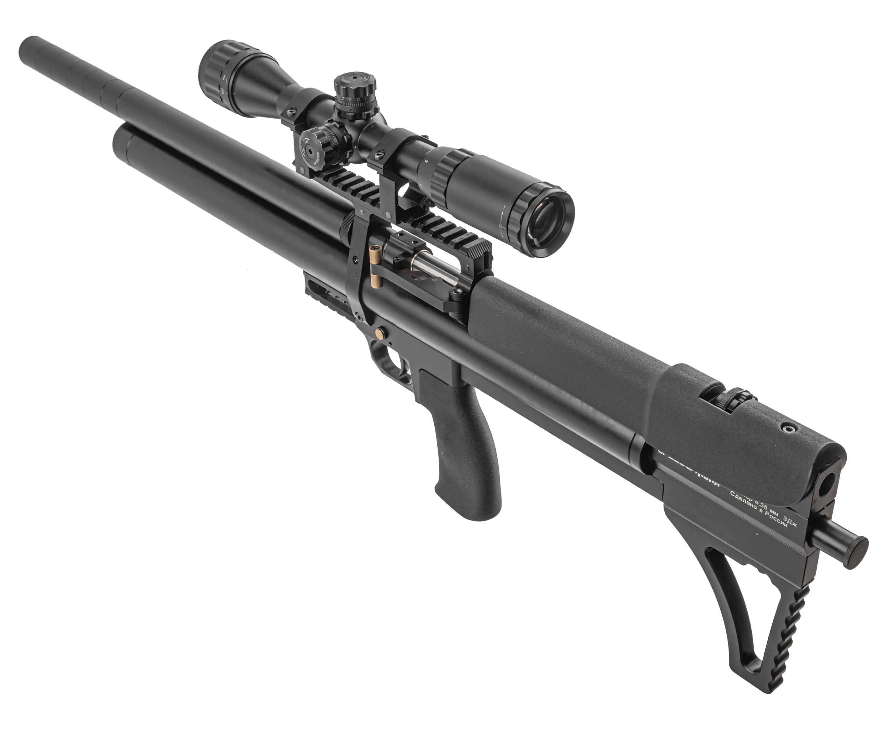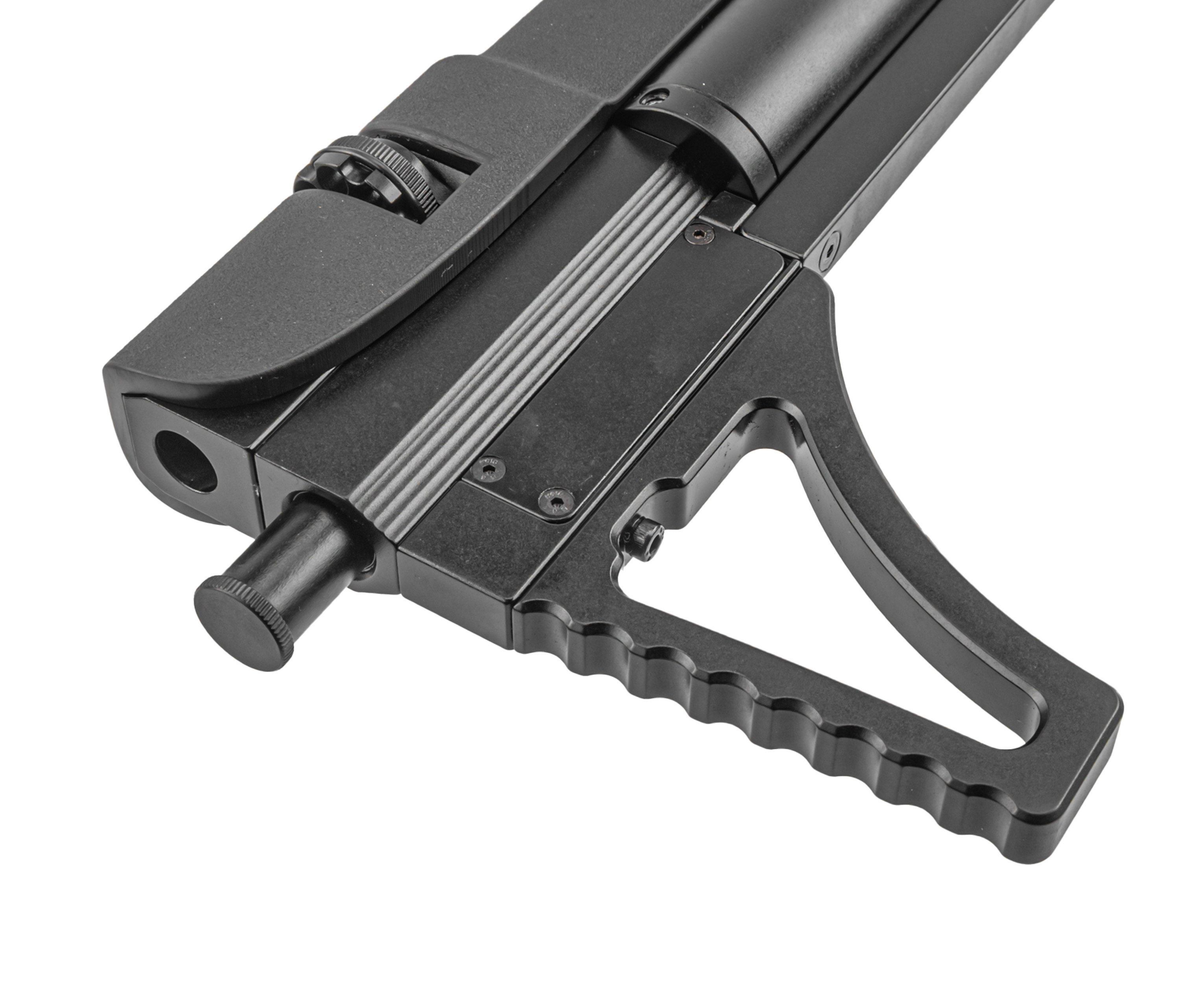 PCP винтовка работает в режиме ручной перезарядки. Для этого после каждого выстрела владельцу потребуется взвести рычажный механизм биатлонного типа. Узел перезарядки перенесли вперед, для большего комфорта пользователя.