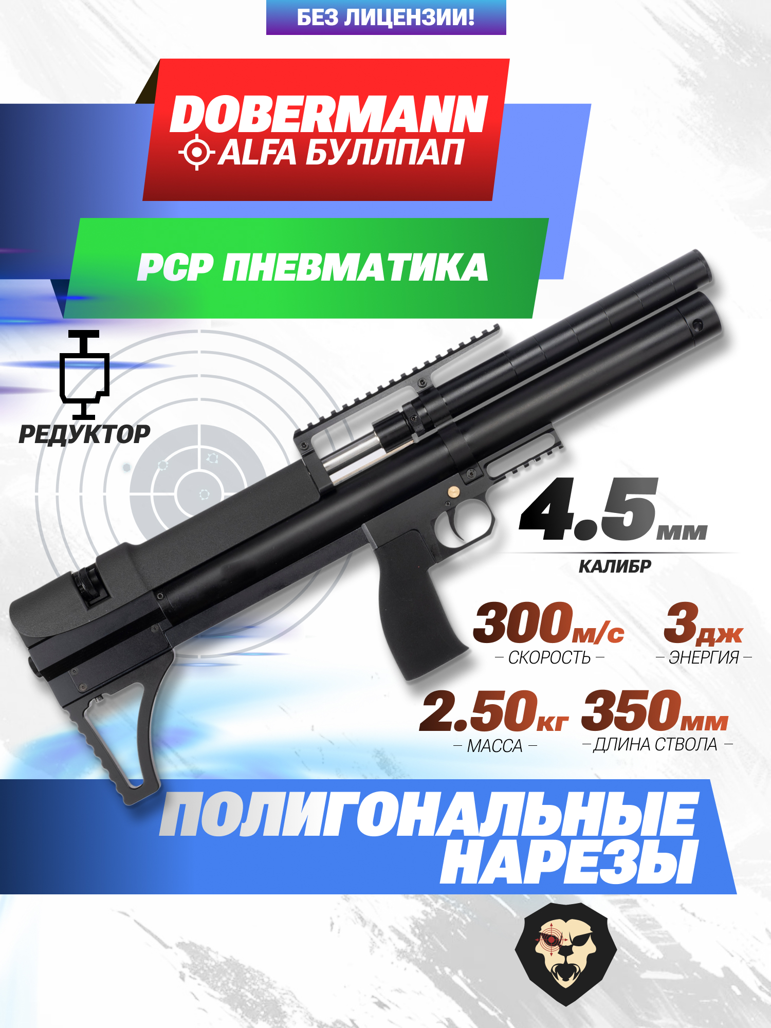 Информация о товаре "Пневматическая винтовка Alfa Dobermann Буллпап 4.5 мм (350 мм, пластик, редуктор, полигональные нарезы, передний взвод)" носит ознакомительный характер, и не является публичной офертой, определяемой положениями Статьи 437 Гражданского кодекса Российской Федерации, характеристики, внешний вид, цвет и комплектация могут быть изменены производителем без уведомления.