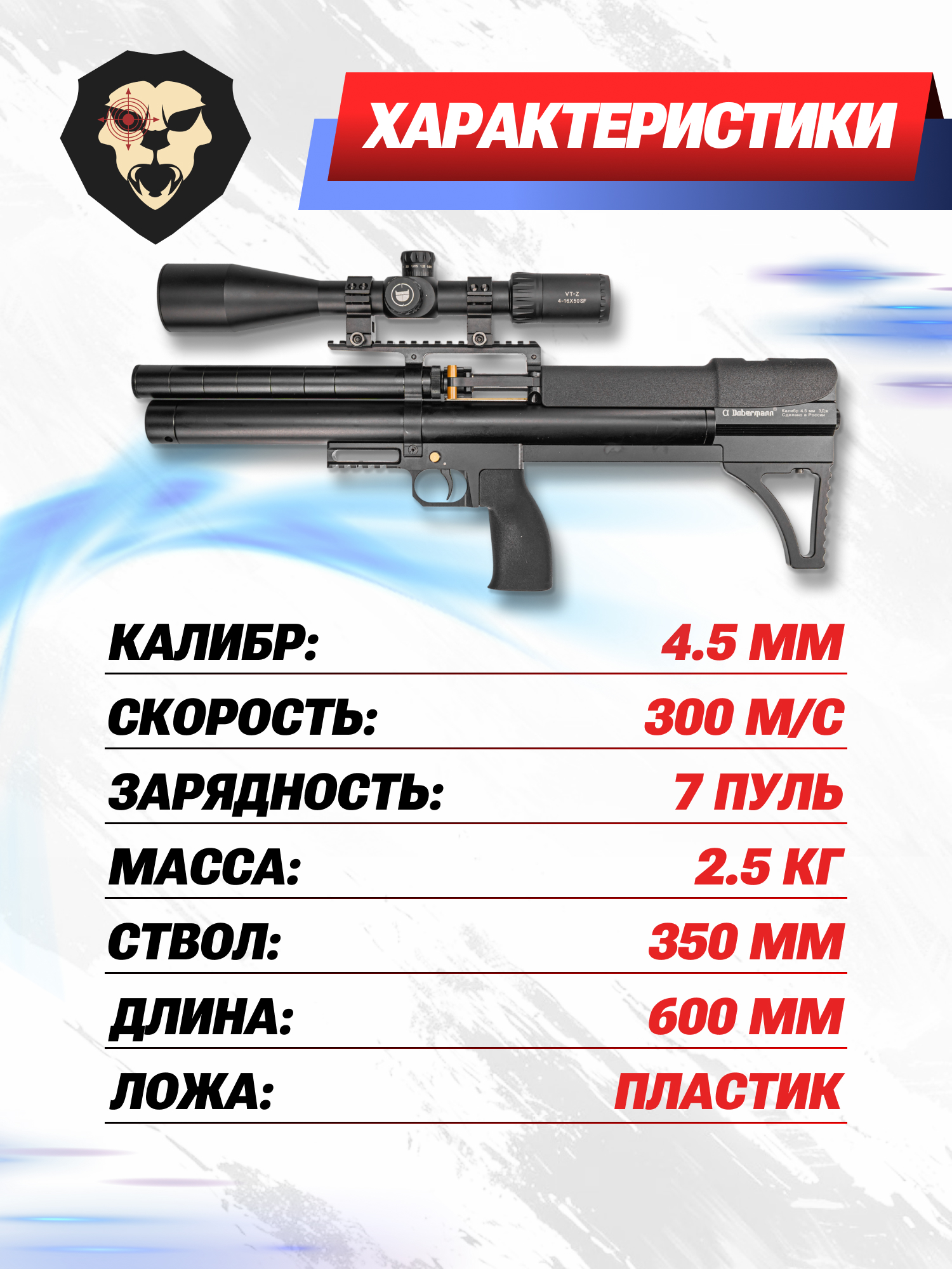 Заложенного в конструкцию потенциала достаточно, чтобы разогнать заряд до 300 метров в секунду. В заводском исполнении для рынка РФ реализовать подобную скорость не получится, так как мощность пневматики составляет 3 Дж. Из достоинств такой версии стоит отметить доступность - покупка возможна по достижении возраста 18 лет без лицензии.