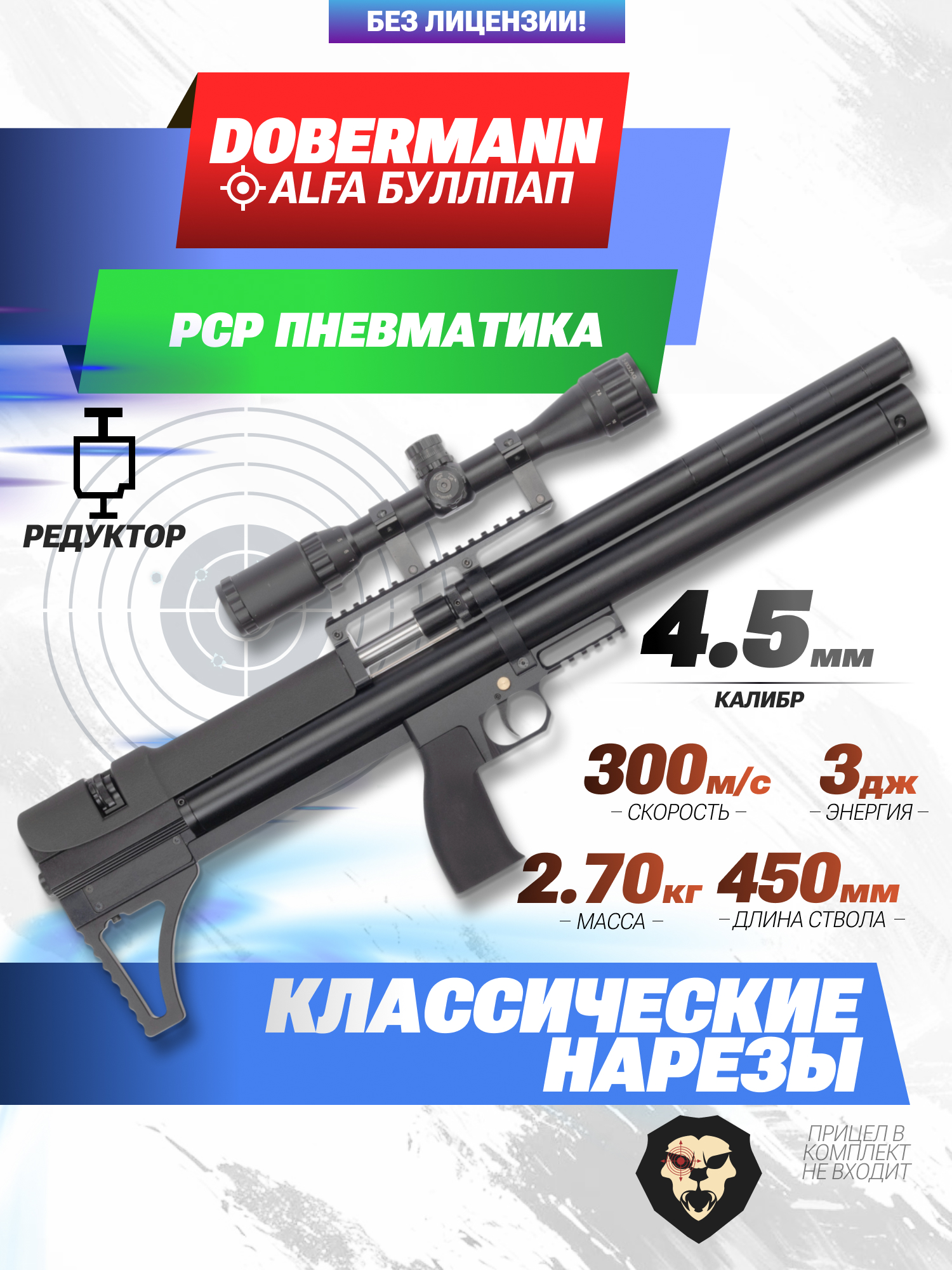 Пневматическая винтовка Alfa Dobermann Буллпап 4.5 мм (450 мм, пластик, редуктор, классические нарезы, передний взвод) купить в интернет-магазине Popadiv10.