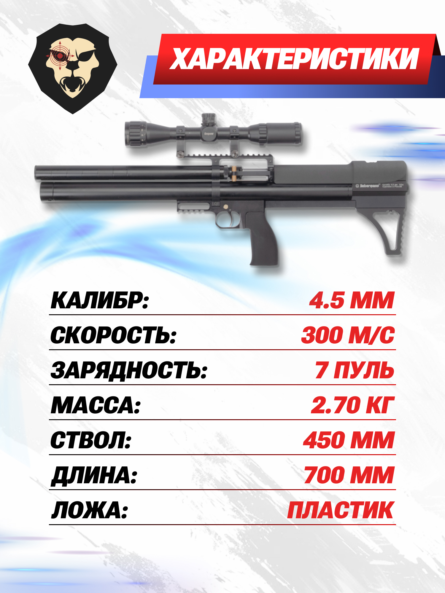 Информация о товаре "Пневматическая винтовка Alfa Dobermann Буллпап 4.5 мм (450 мм, пластик, редуктор, классические нарезы, передний взвод)" носит ознакомительный характер, и не является публичной офертой, определяемой положениями Статьи 437 Гражданского кодекса Российской Федерации, характеристики, внешний вид, цвет и комплектация могут быть изменены производителем без уведомления.