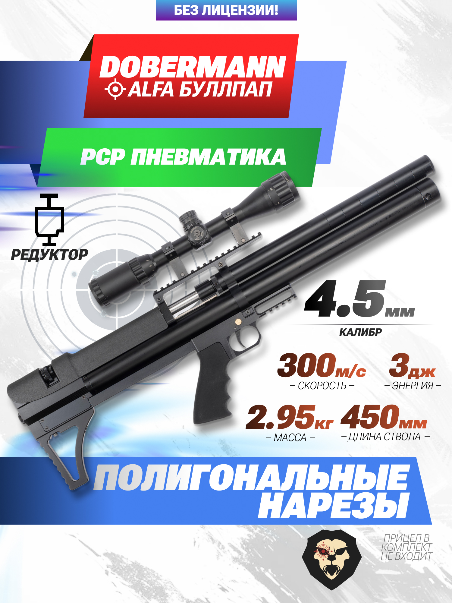 Информация о товаре "Пневматическая винтовка Alfa Dobermann Буллпап 4.5 мм (450 мм, пластик, редуктор, полигональные нарезы, передний взвод)" носит ознакомительный характер, и не является публичной офертой, определяемой положениями Статьи 437 Гражданского кодекса Российской Федерации, характеристики, внешний вид, цвет и комплектация могут быть изменены производителем без уведомления.