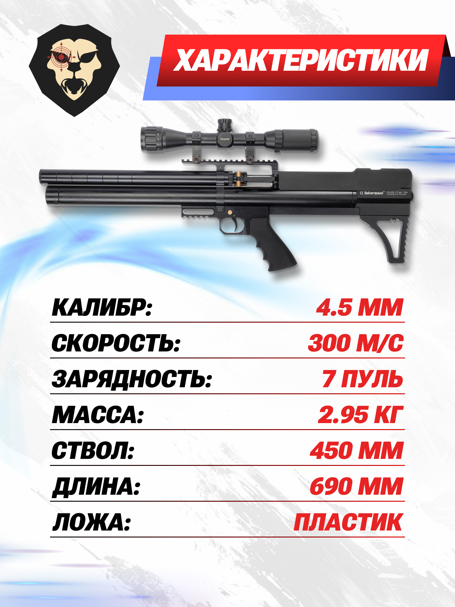 | Комплектация | Винтовка, магазин, заправочный штуцер, упаковка, краткая документация, копия сертификата (по запросу покупателя) |