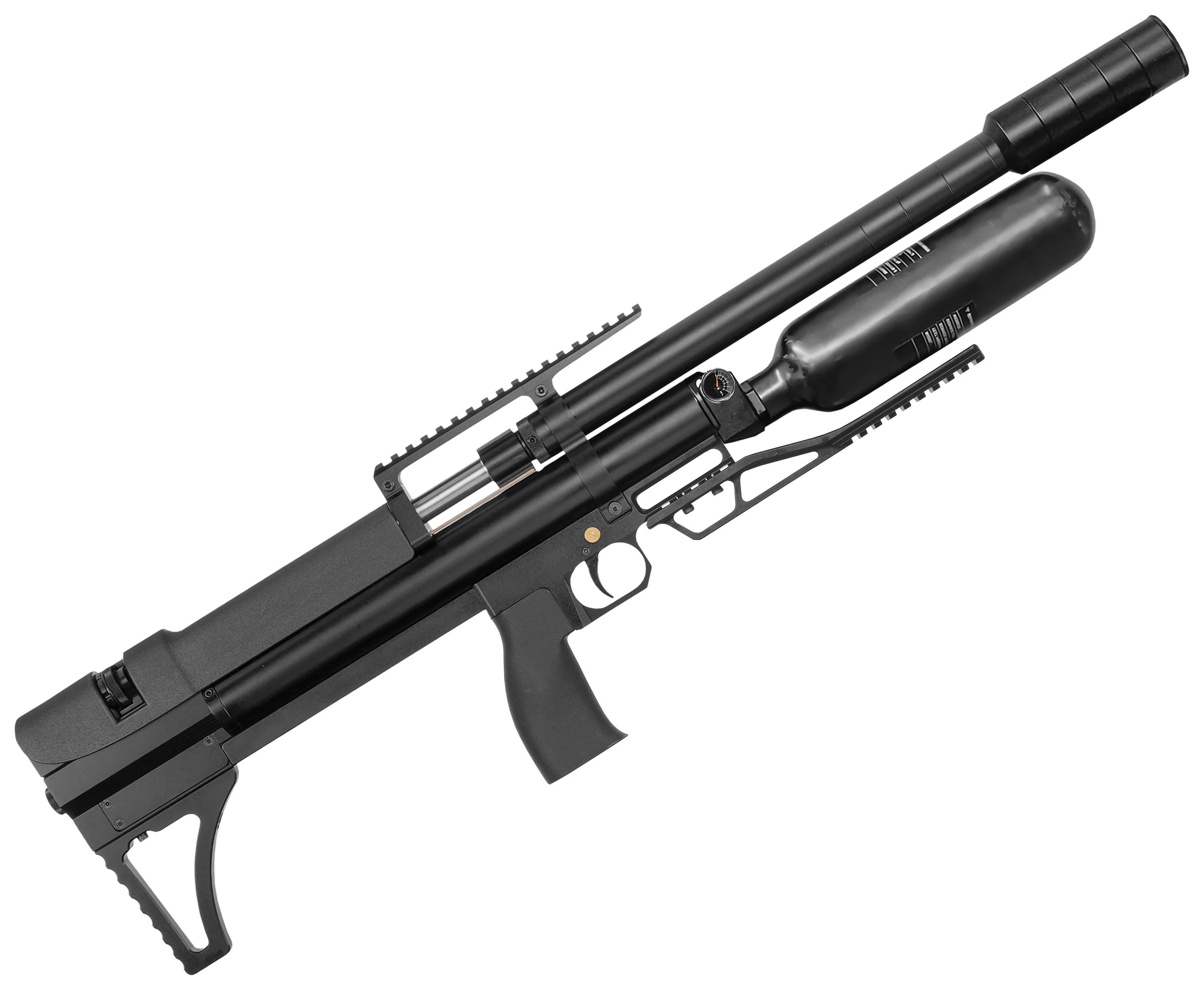 Из числа последних пристального внимания заслуживает линейка Альфа Булл-Пап, которая пополнилась экземплярами с предустановленной заводской колбой. Альтернативный ресивер увеличенного объема 345 кубических сантиметров грамотно объединен с частью линейной системы, что вкупе позволило добиться суммарного объема накачки 550 куб. см. На практике пневматика показывает повышенную автономность работы и дает в полной мере насладиться стрельбой.