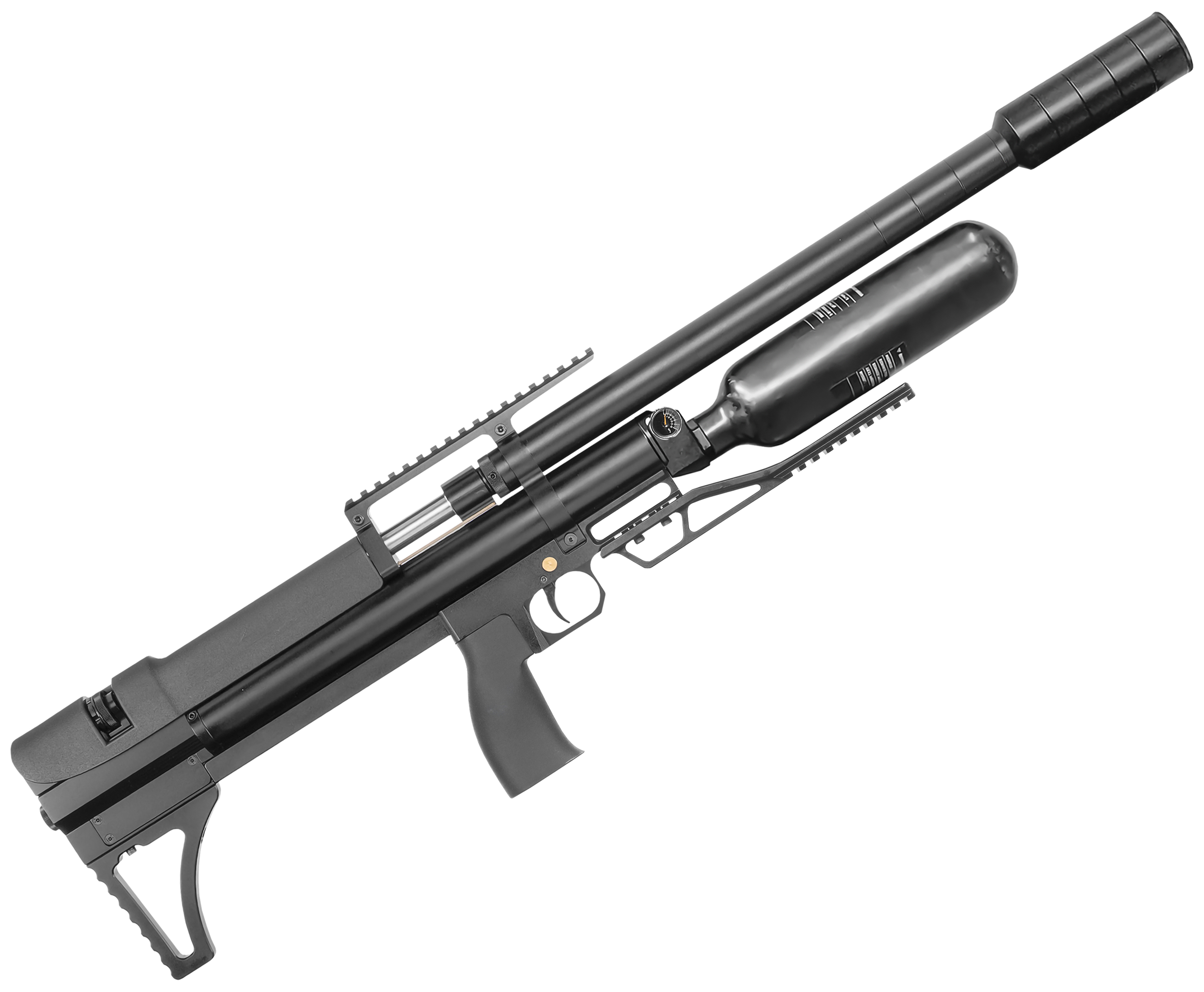 Обновленная серия Alfa Bull-Pup теперь с завода оснащается колбой на 345 кубических сантиметров. Более емкий ресивер, который грамотно совмещен с остаточной частью линейной системы, позволил повысить общий объем до 550 куб. см. В то же время благодаря продуманной конструкции оружие сохранило компактный размер и удобство обращения.