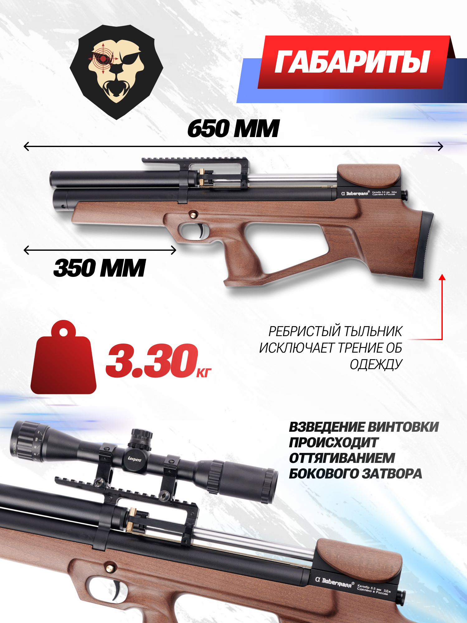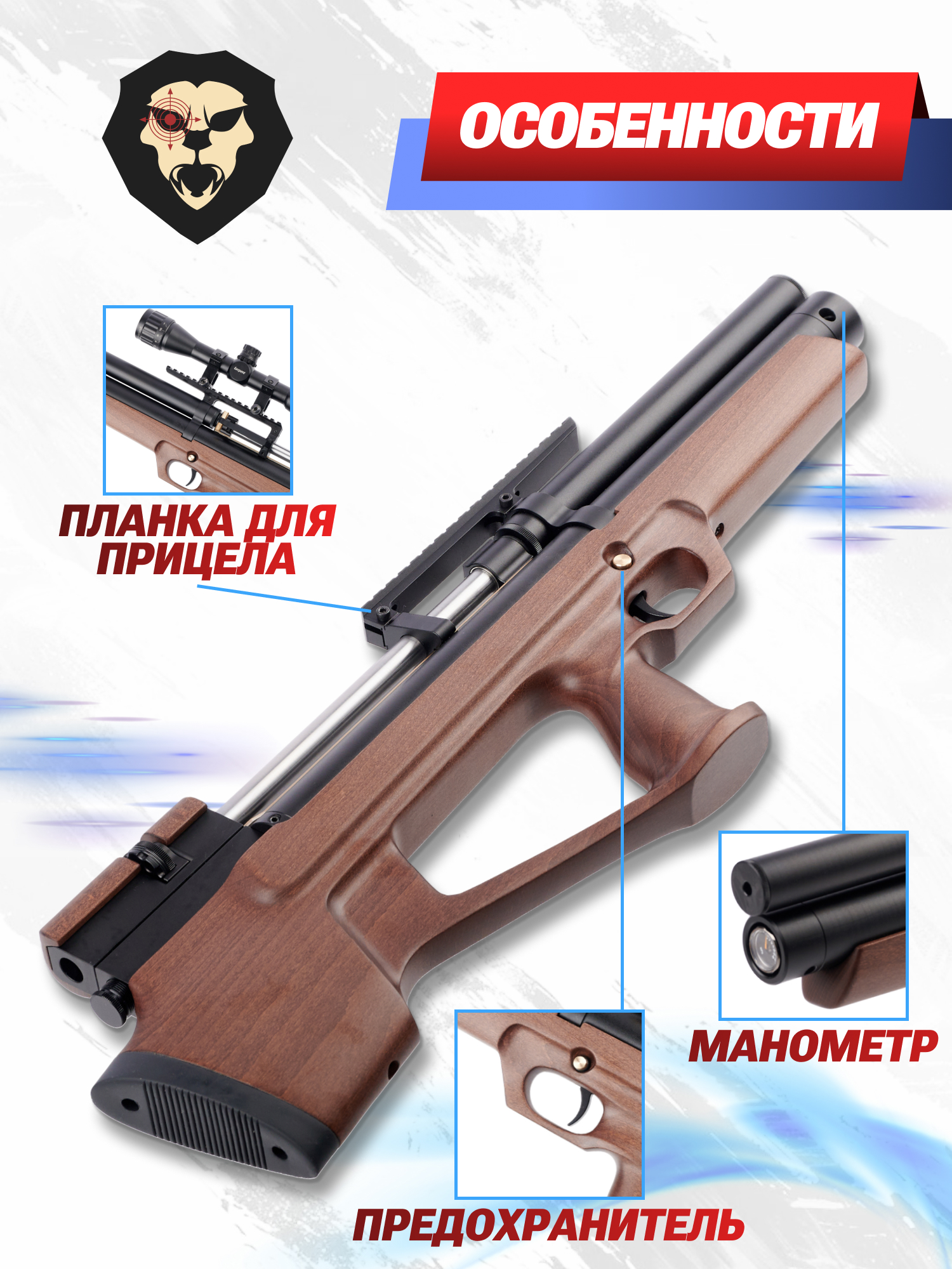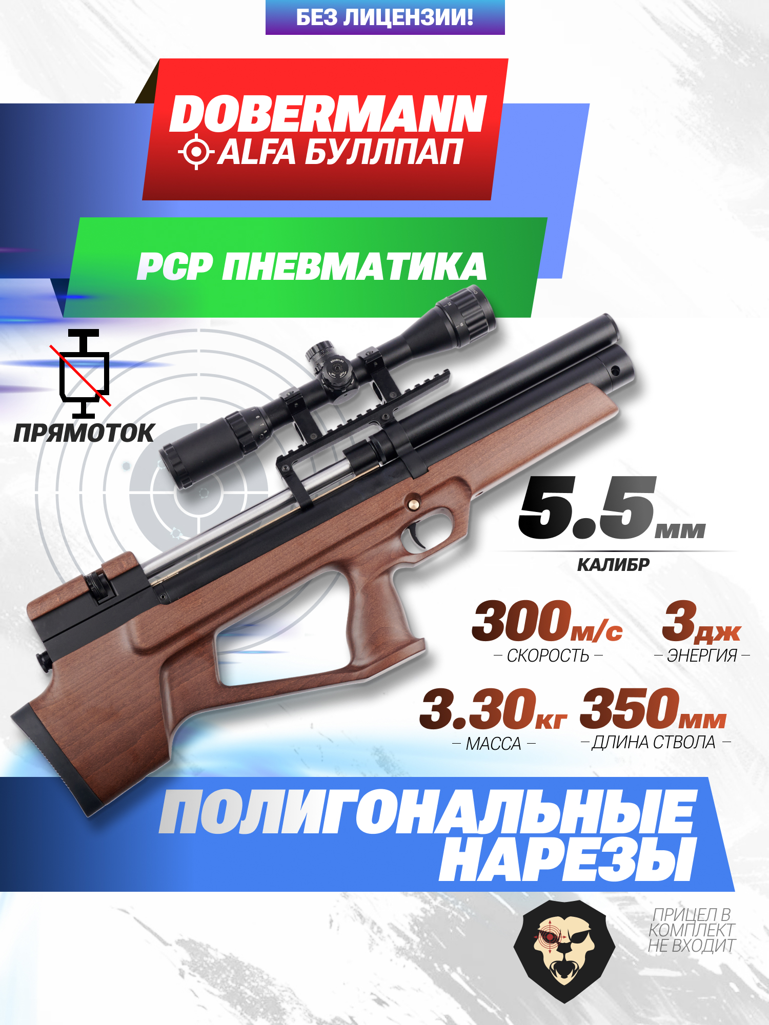 Пневматическая винтовка Alfa Dobermann БуллПап 5.5 мм (350 мм, полигональные нарезы, дерево, передний взвод) купить в интернет-магазине Popadiv10.