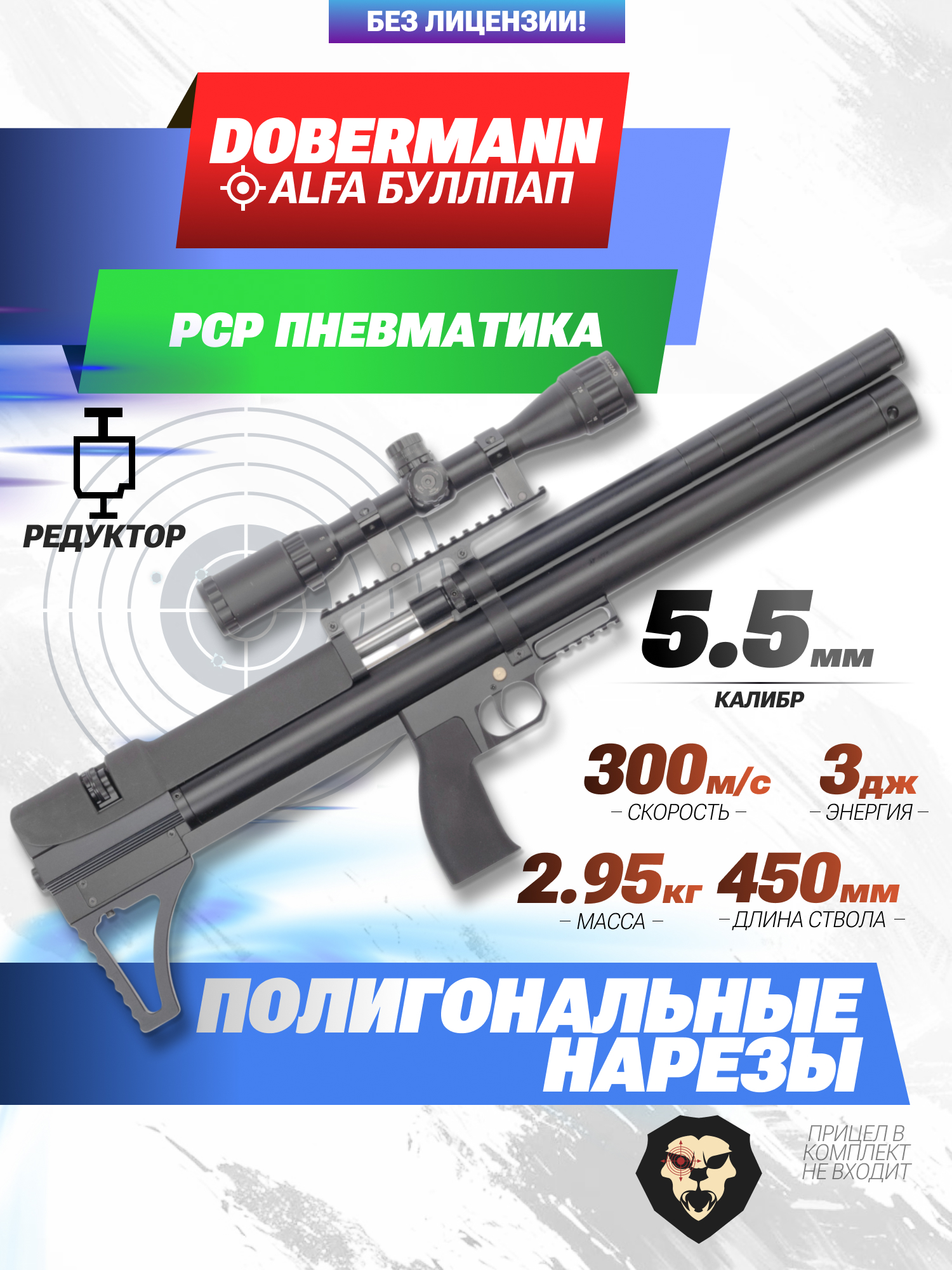 Пневматическая винтовка Alfa Dobermann Буллпап 5.5 мм (450 мм, пластик, редуктор, полигональные нарезы, передний взвод) купить в интернет-магазине Popadiv10.