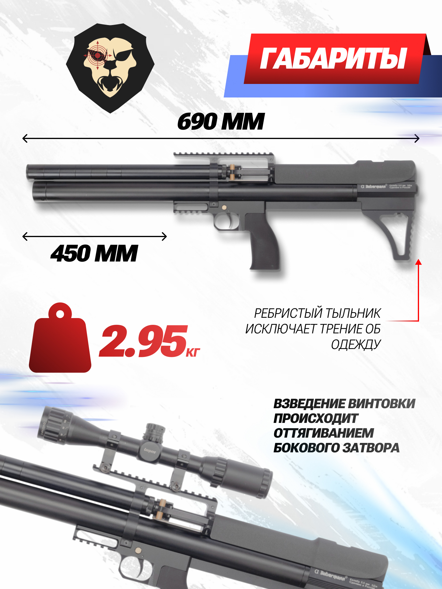 | Комплектация | Винтовка, магазин, заправочный штуцер, упаковка, краткая документация, копия сертификата (по запросу покупателя) |