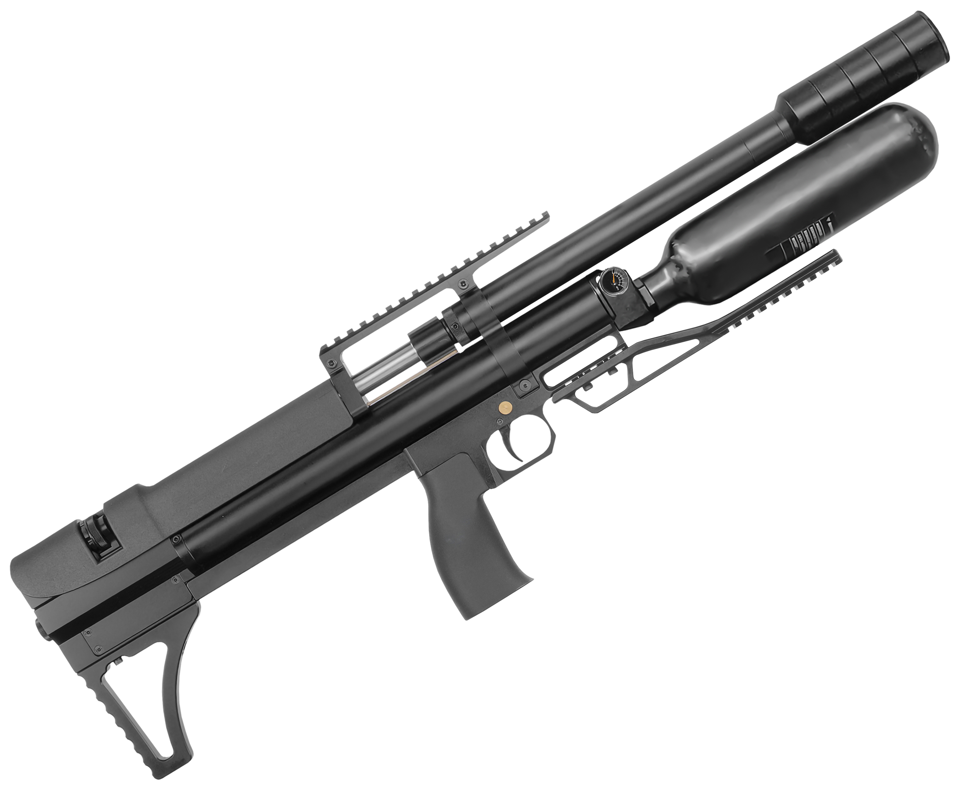 Из числа последних пристального внимания заслуживает усовершенствованная линейка BullPup Alfa. Винтовки получили альтернативный колбовый 345-кубовый резервуар, который грамотно совмещен с частью стандартного линейного хранилища. В итоге такое решение привело к увеличению суммарного объема под накачку воздухом до 550 кубических см.