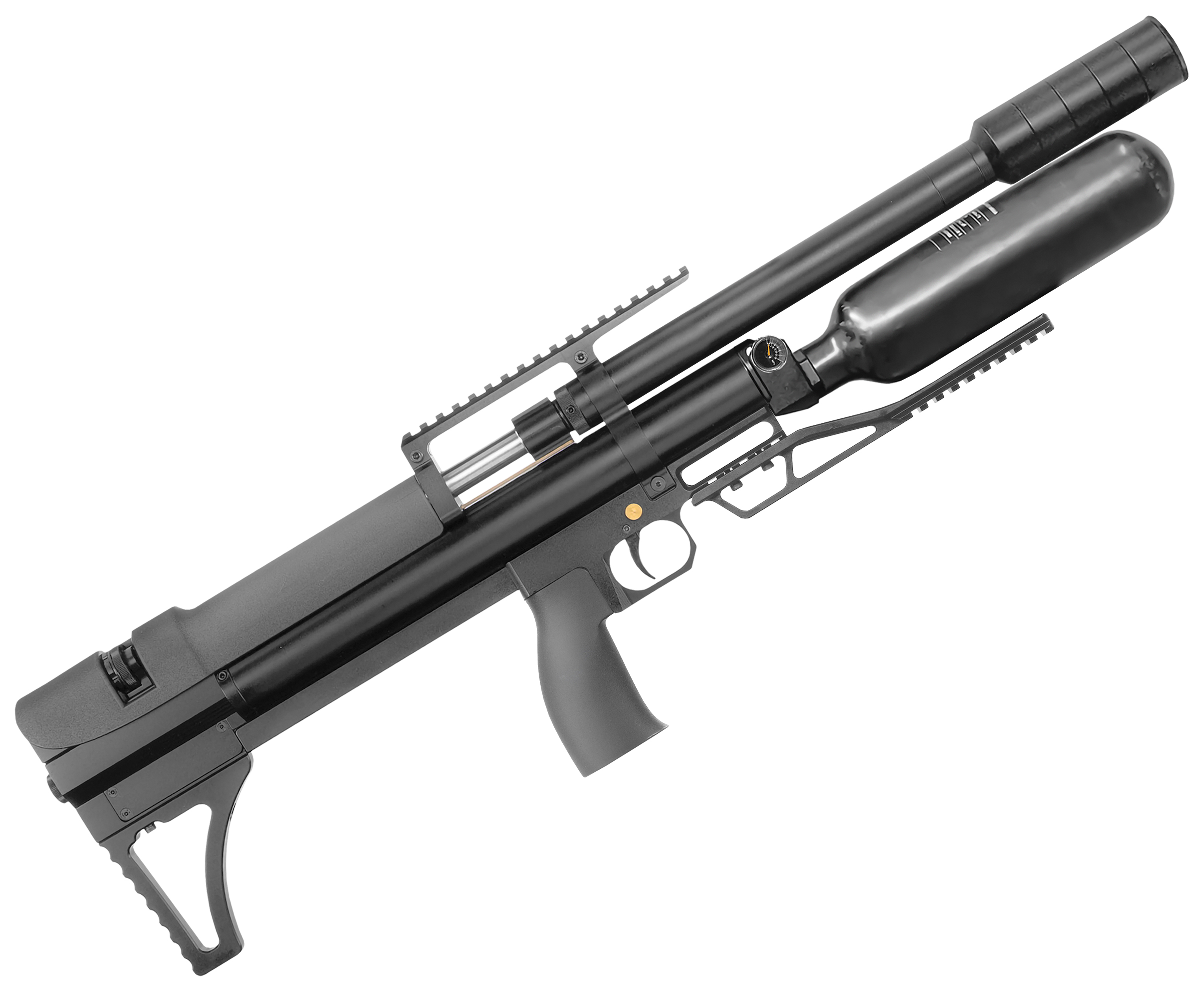 Пневматическая винтовка Alfa Dobermann Буллпап 5.5 мм (прямоток, модератор 44 мм, стандарт, передний взвод, 450 мм, колба) купить в интернет-магазине Popadiv10.