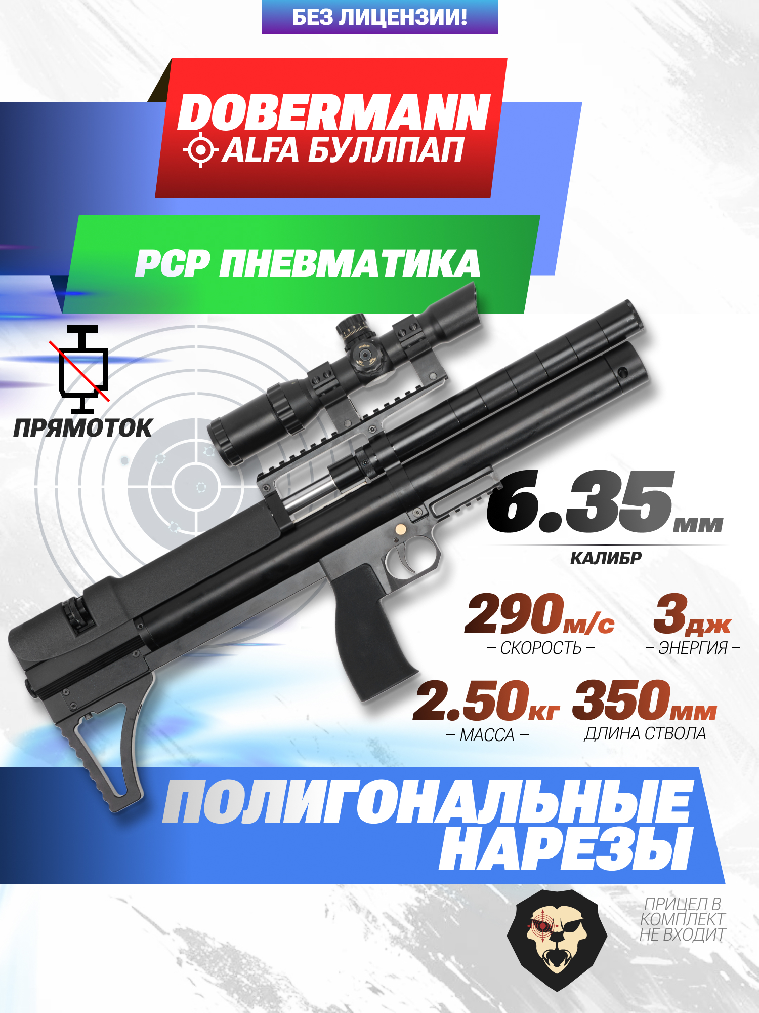 Пневматическая винтовка Alfa Dobermann Буллпап 6.35 мм (350 мм, передний взвод, полигональные нарезы) купить в интернет-магазине Popadiv10.