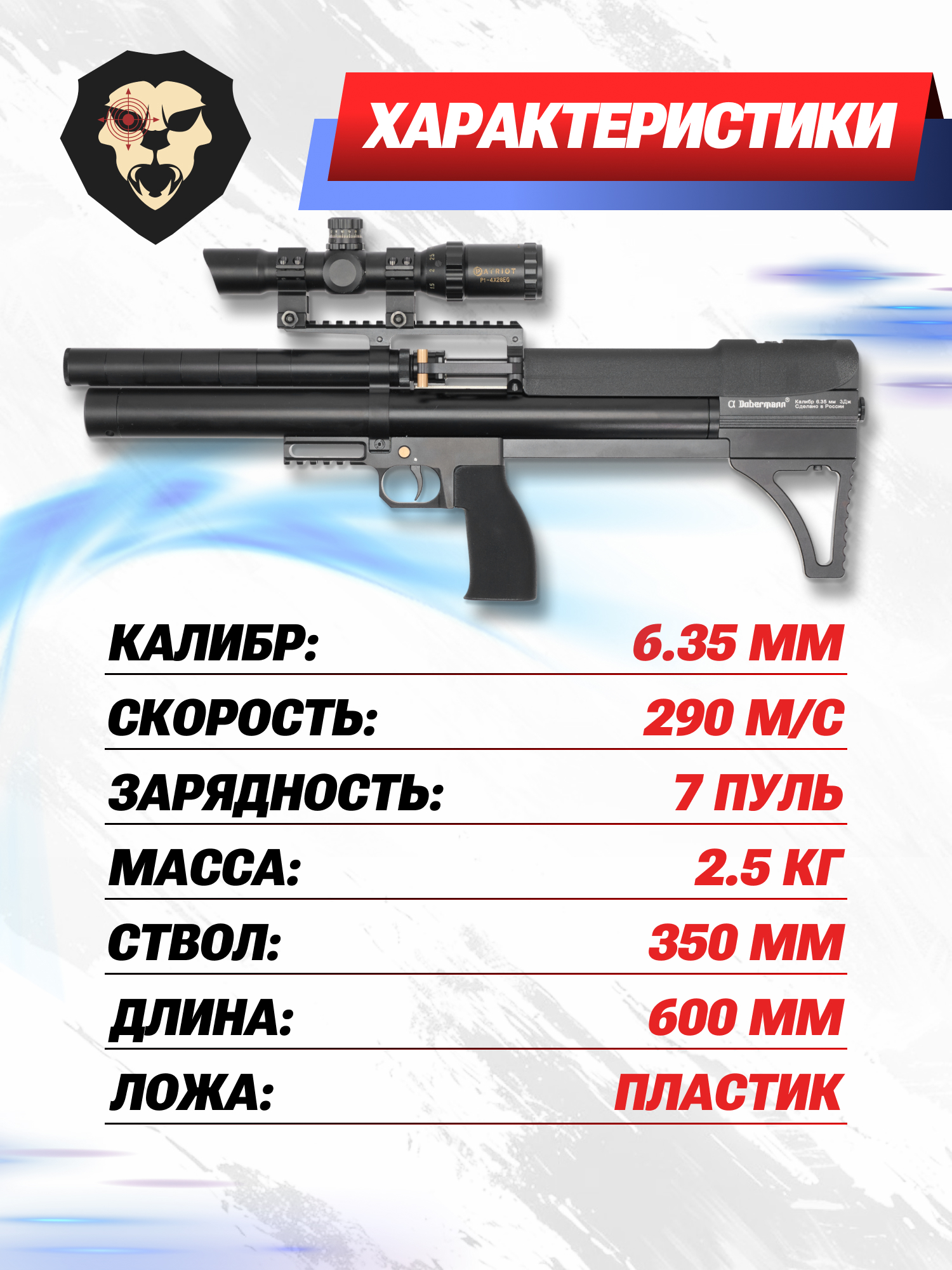 Информация о товаре "Пневматическая винтовка Alfa Dobermann Буллпап 6.35 мм (350 мм, передний взвод, полигональные нарезы)" носит ознакомительный характер, и не является публичной офертой, определяемой положениями Статьи 437 Гражданского кодекса Российской Федерации, характеристики, внешний вид, цвет и комплектация могут быть изменены производителем без уведомления.