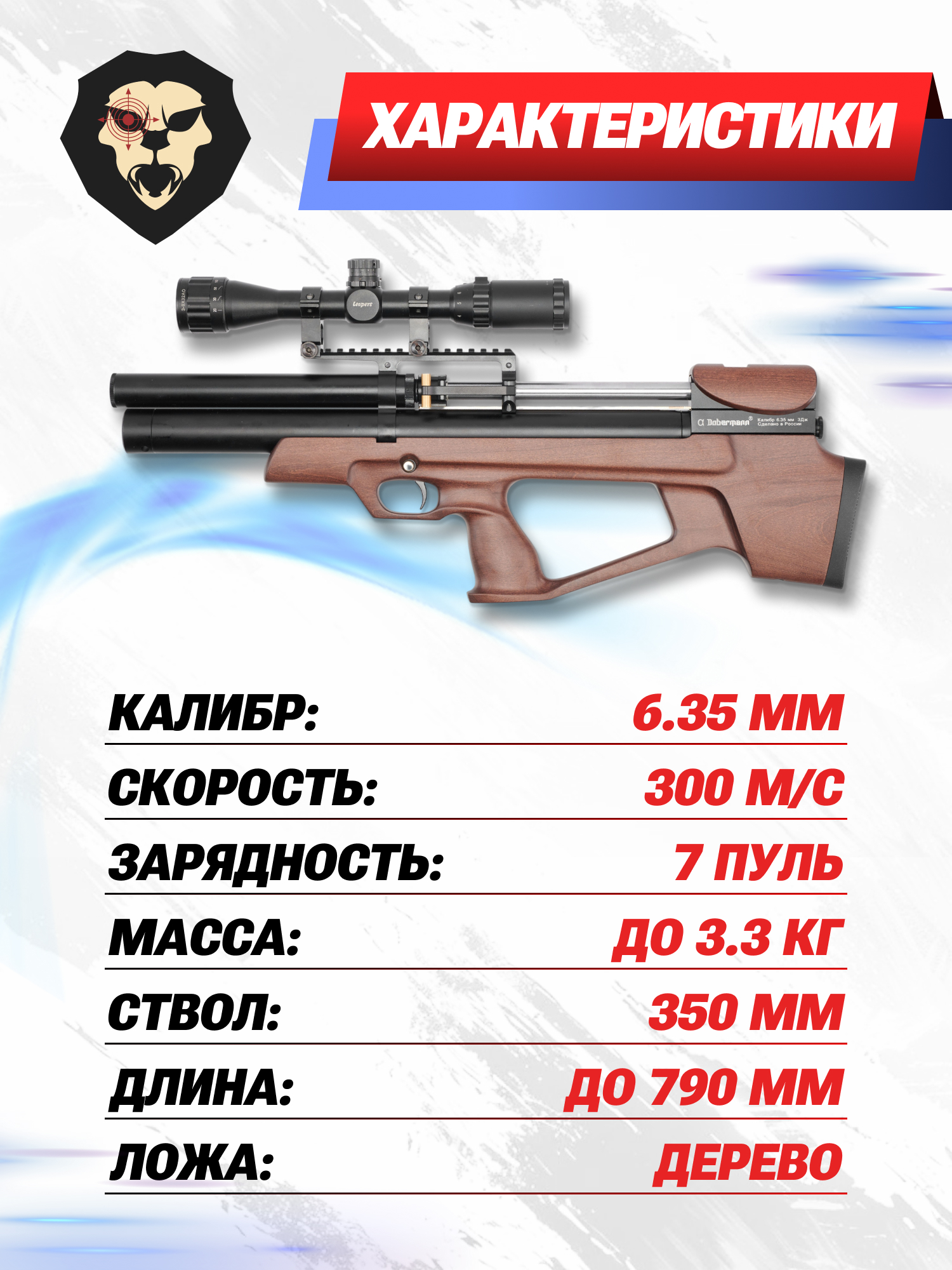 Представленный экземпляр может выпускать боеприпас со скоростью до 300 метров в секунду. Но в соответствии с требованием российского законодательства, перед выпуском мощность этой пневматики уменьшается до значения в три Джоуля. Благодаря этому, чтобы приобрести такое PCP оружие, пользователям не понадобится специальных лицензий и разрешений.