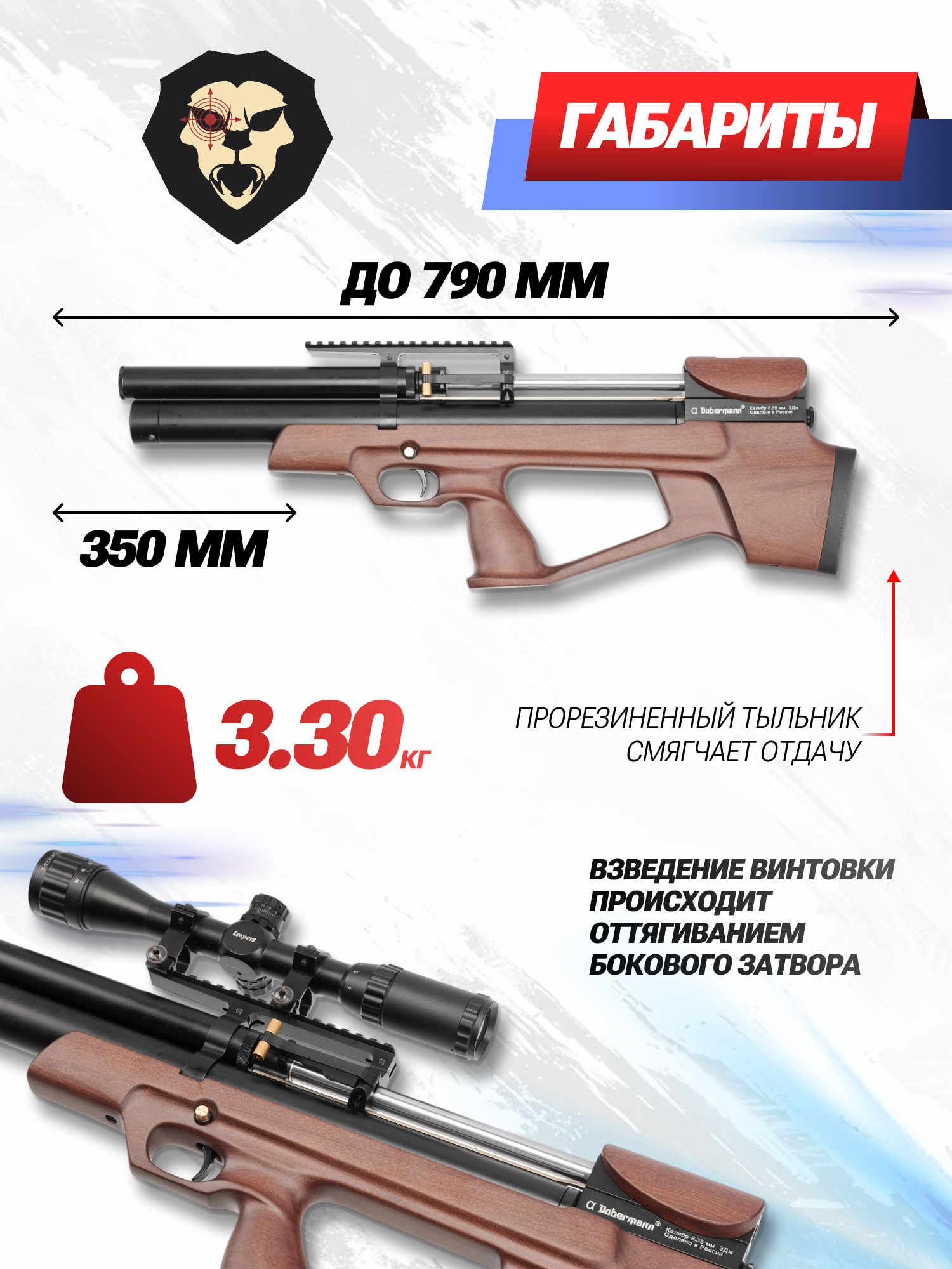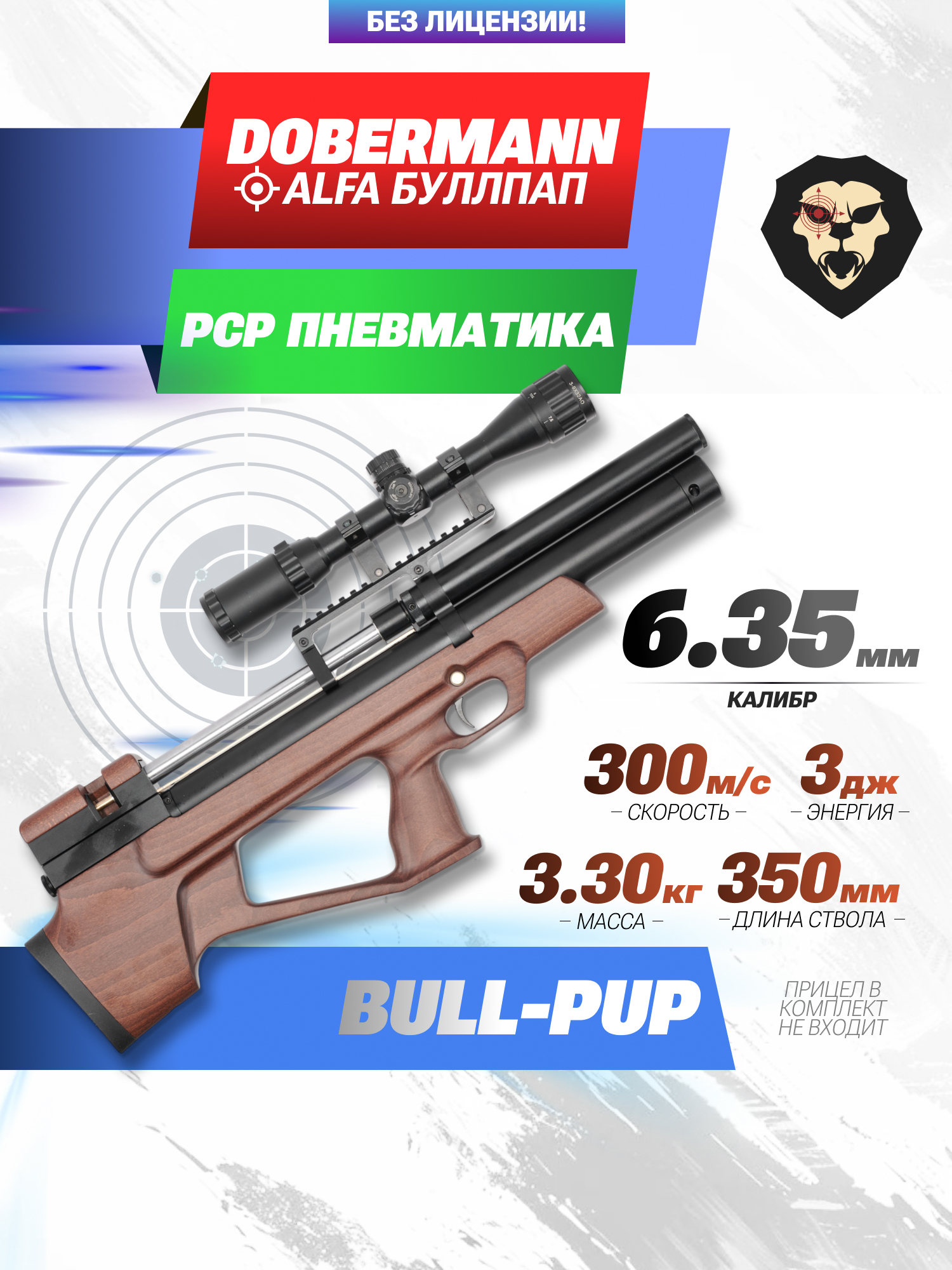 Пневматическая винтовка Alfa Dobermann БуллПап 6.35 мм (350 мм, стандартные нарезы, дерево, передний взвод) купить в интернет-магазине Popadiv10.