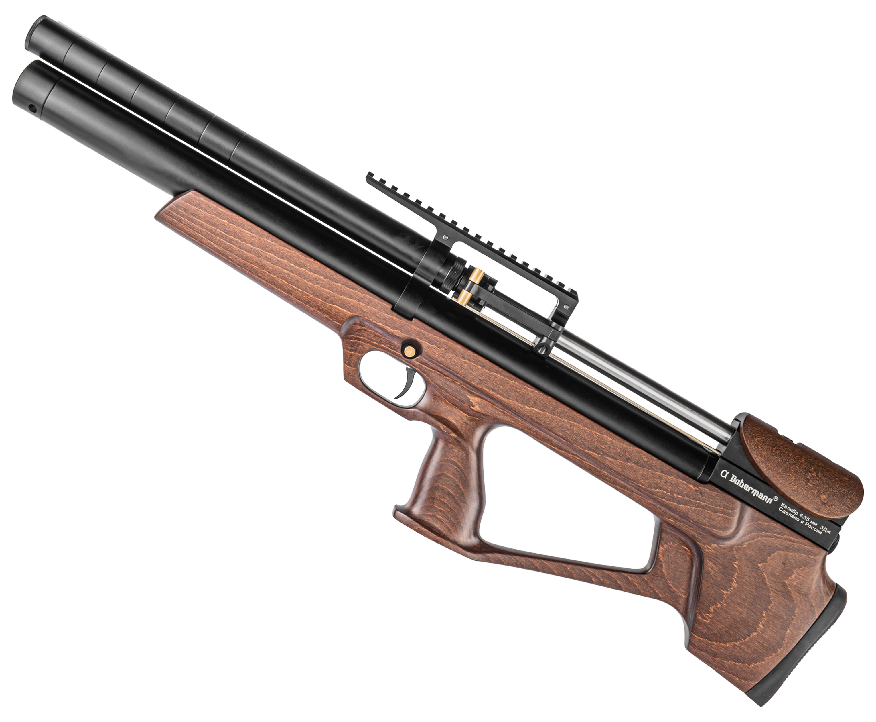 Российский сегмент пневматики PCP включает богатый выбор винтовок в различной компоновке не только от зарубежных, но и отечественных изготовителей. Из числа последних стоит обратить внимание на продукцию компании Доберман. Изделия мастерской порадуют качеством и вариативностью исполнения, что дает возможность выбрать решение, исходя из требований будущего владельца.