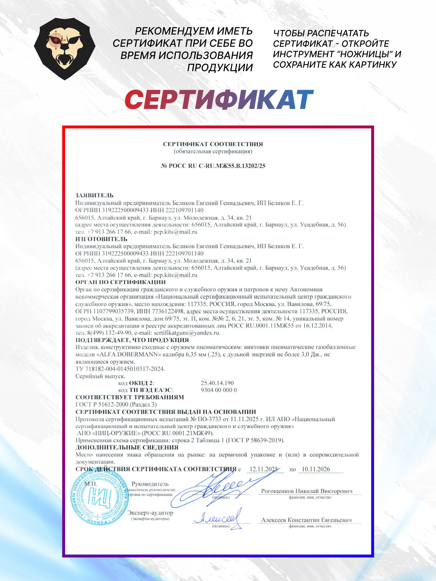 | Комплектация | Винтовка, магазин, заправочный штуцер, упаковка, краткая документация, копия сертификата (по запросу покупателя) |