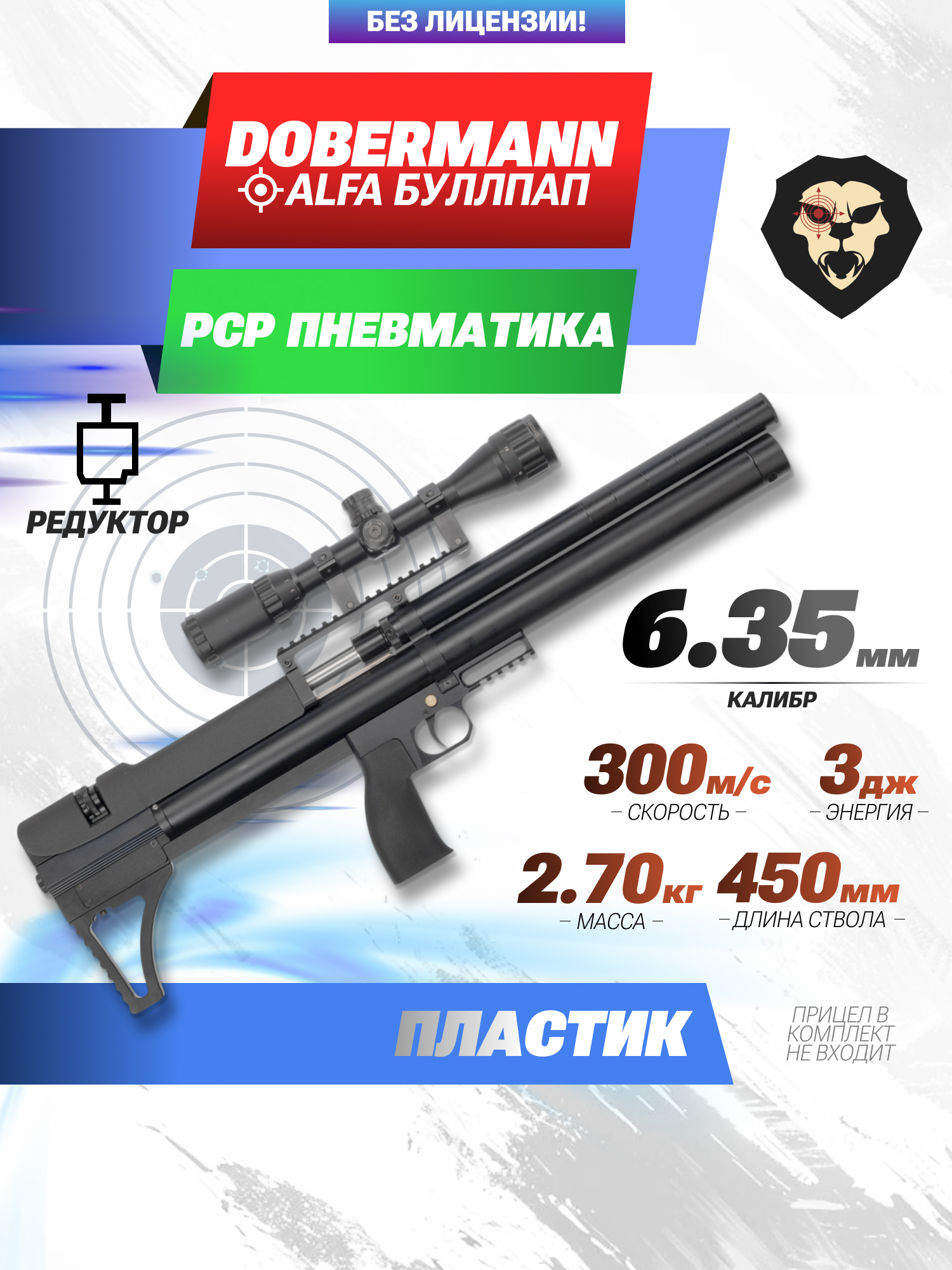 Пневматическая винтовка Alfa Dobermann Буллпап 6.35 мм (450 мм, пластик, редуктор, полигональные нарезы, передний взвод) купить в интернет-магазине Popadiv10.