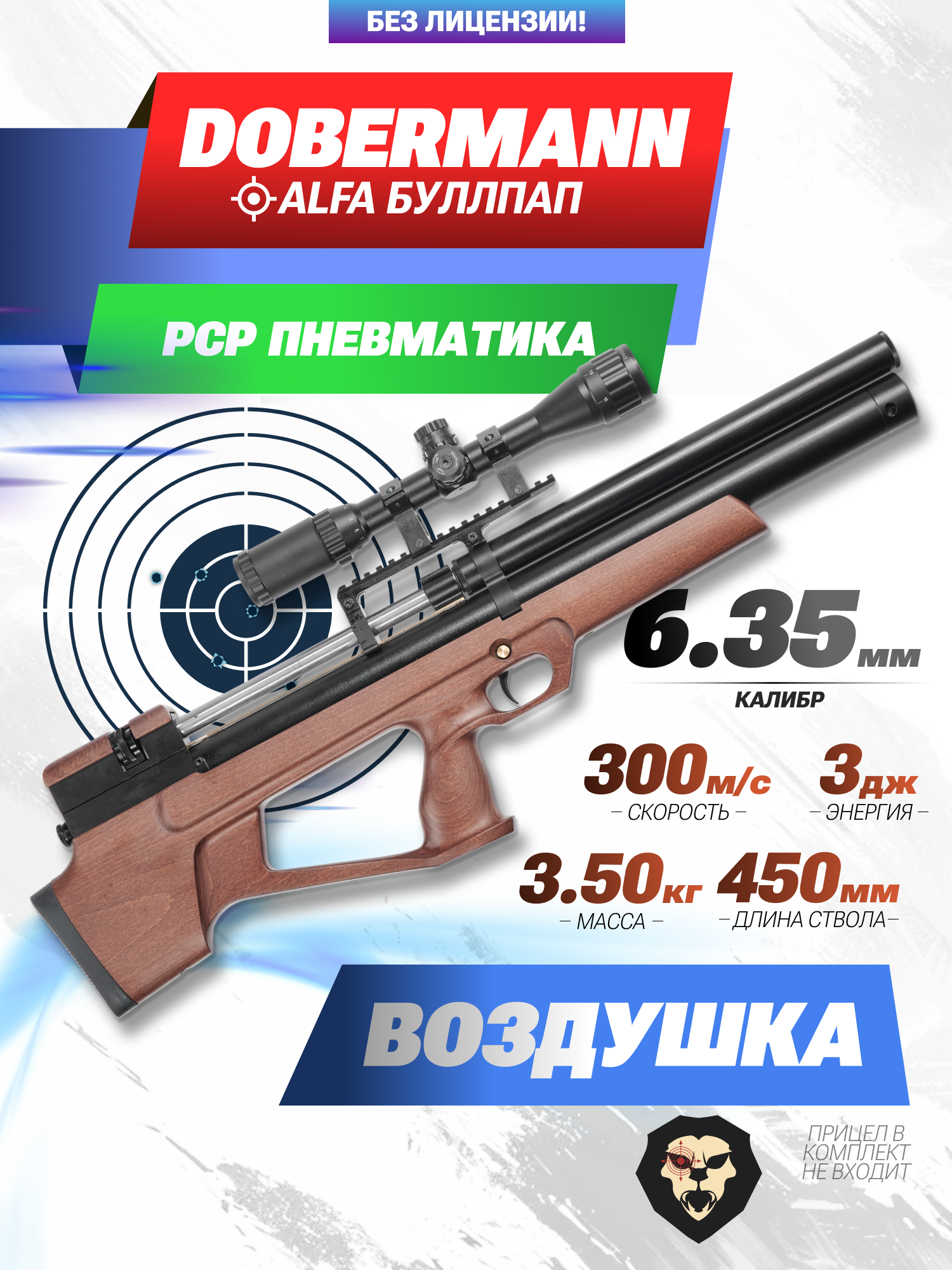 Пневматическая винтовка Alfa Dobermann Буллпап 6.35 мм (450 мм, полигональные нарезы, дерево, передний взвод) купить в интернет-магазине Popadiv10.