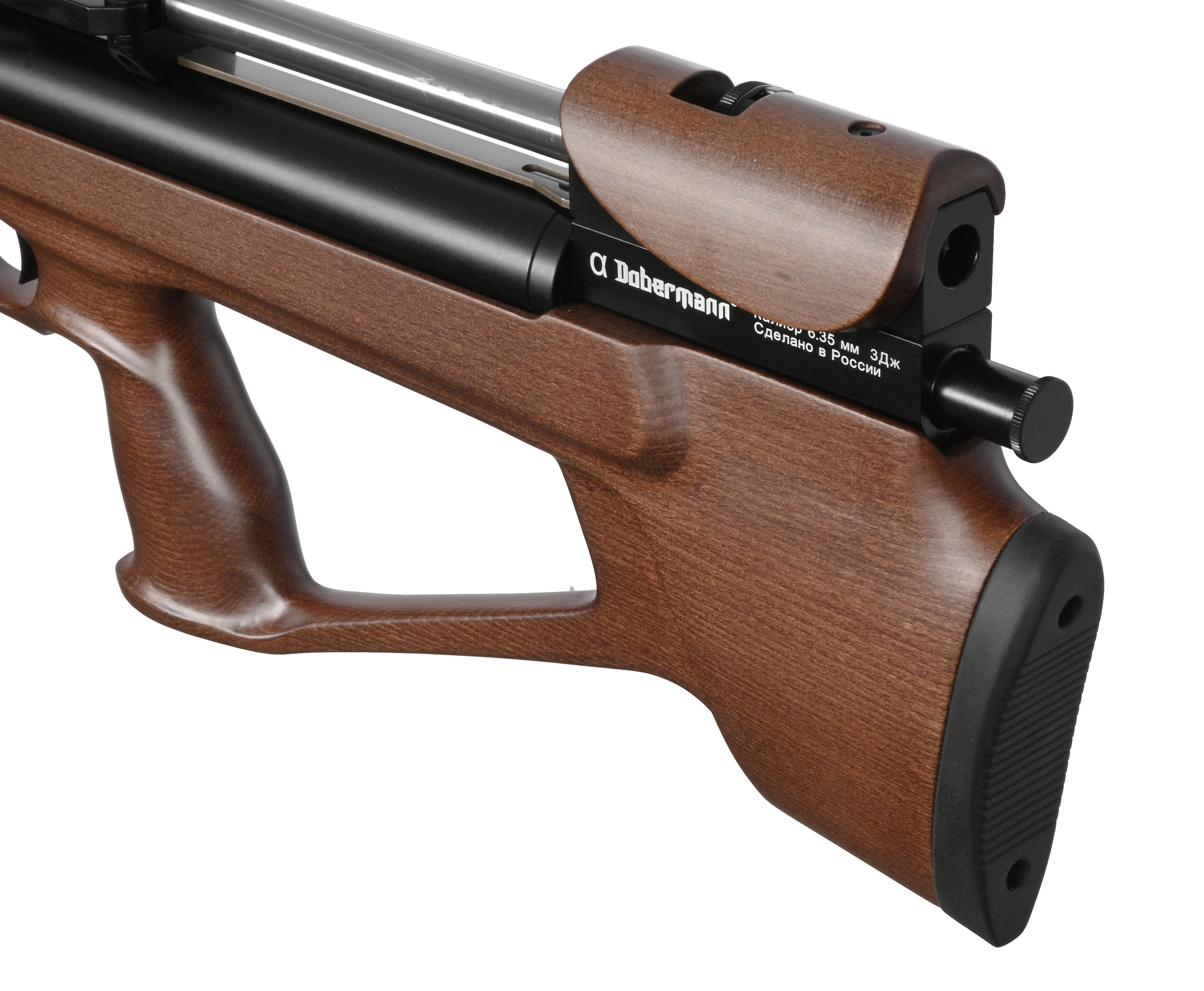 Пневматическая винтовка Alfa Dobermann Буллпап 6.35 мм (550 мм, прямоток, под полнотел, модератор 44 мм, передний взвод, дерево) купить в интернет-магазине Popadiv10.