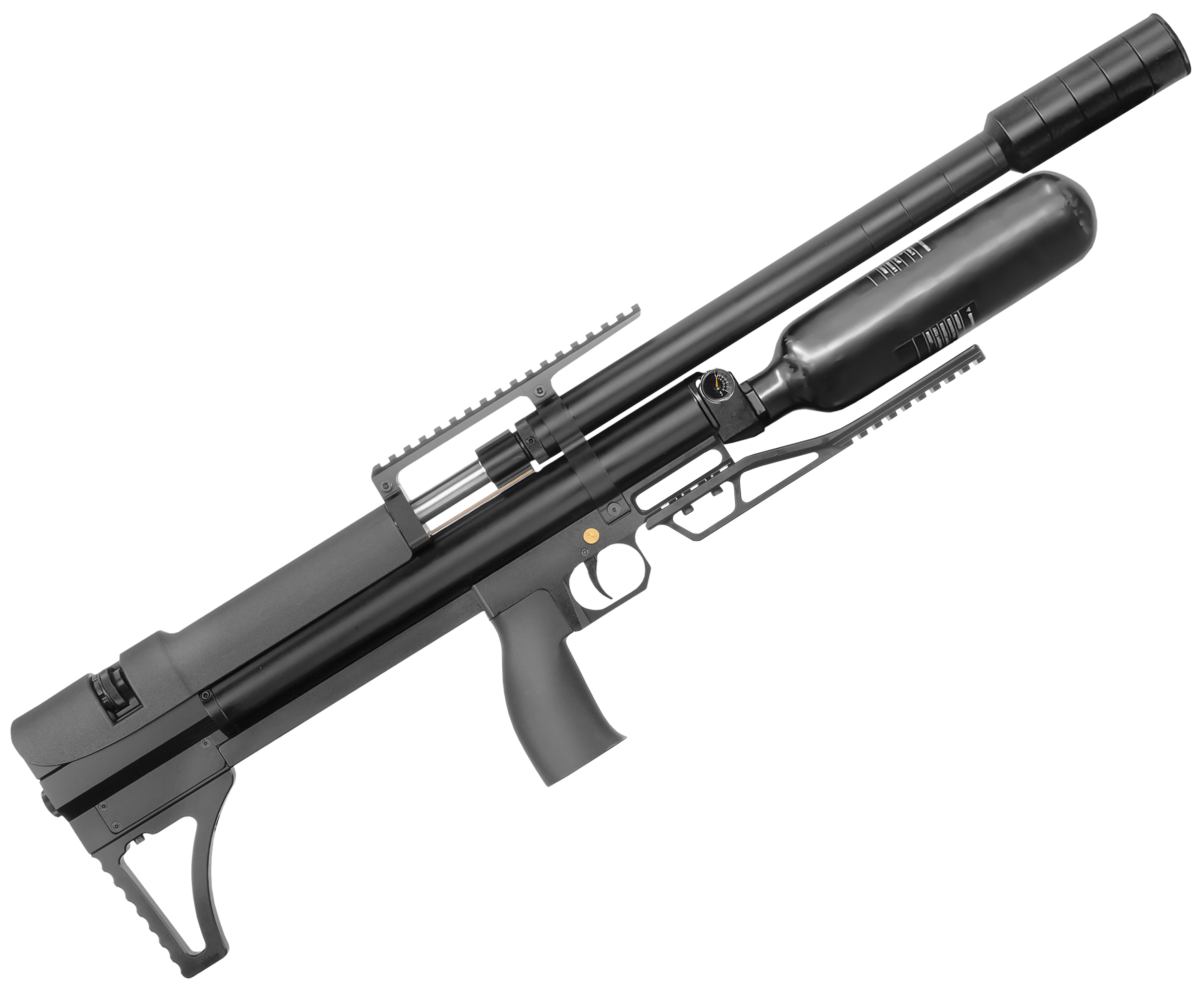 Пневматическая винтовка Alfa Dobermann Буллпап 6.35 мм (550 мм, прямоток, полигонал, под полнотел, модератор 44 мм, колба, передний взвод) купить в интернет-магазине Popadiv10.