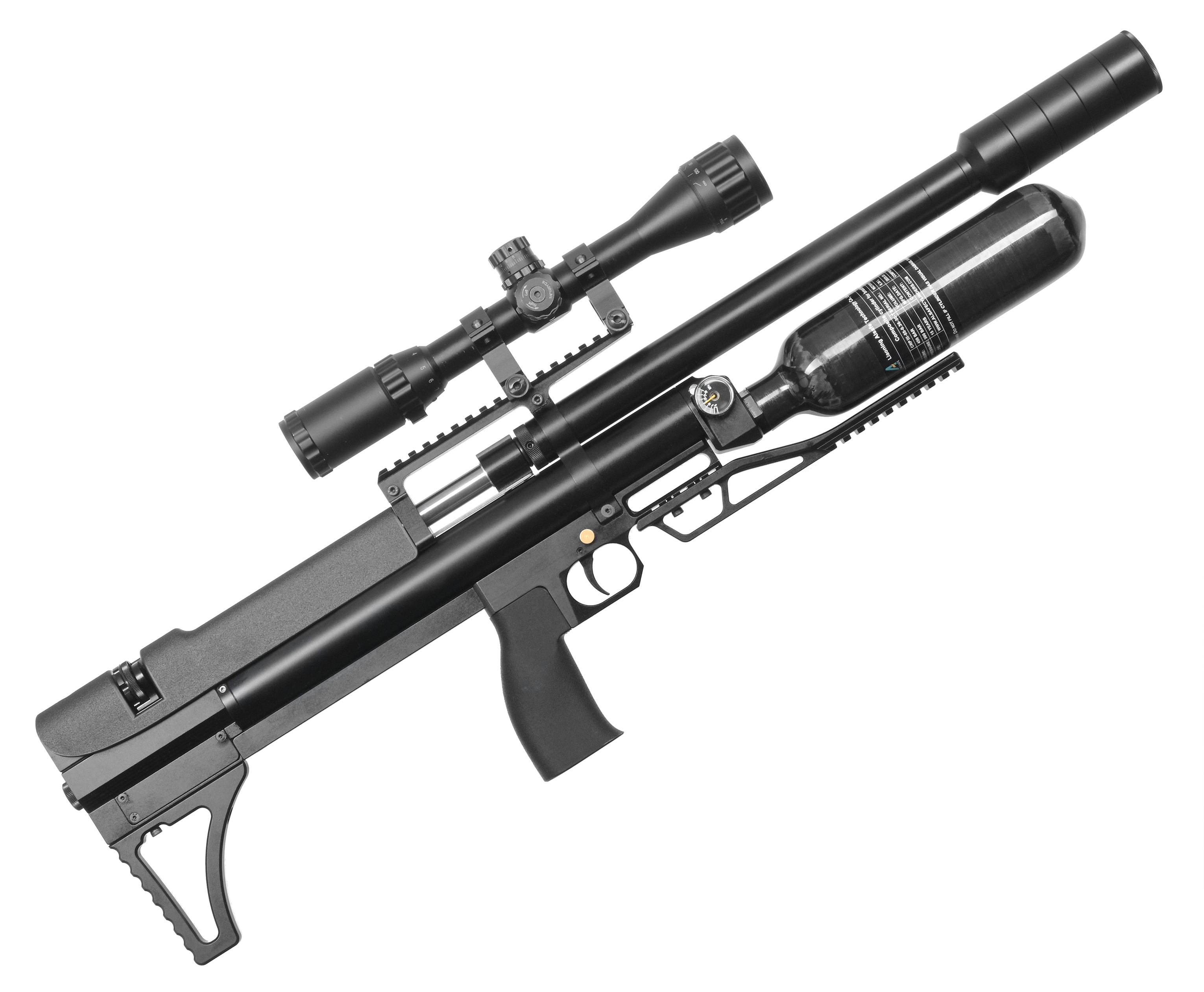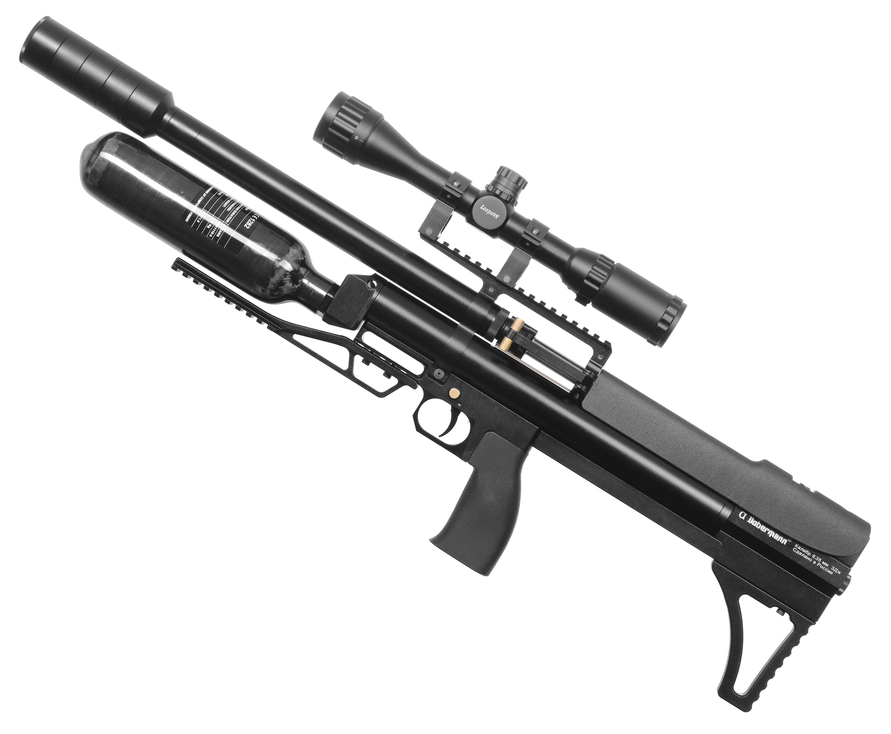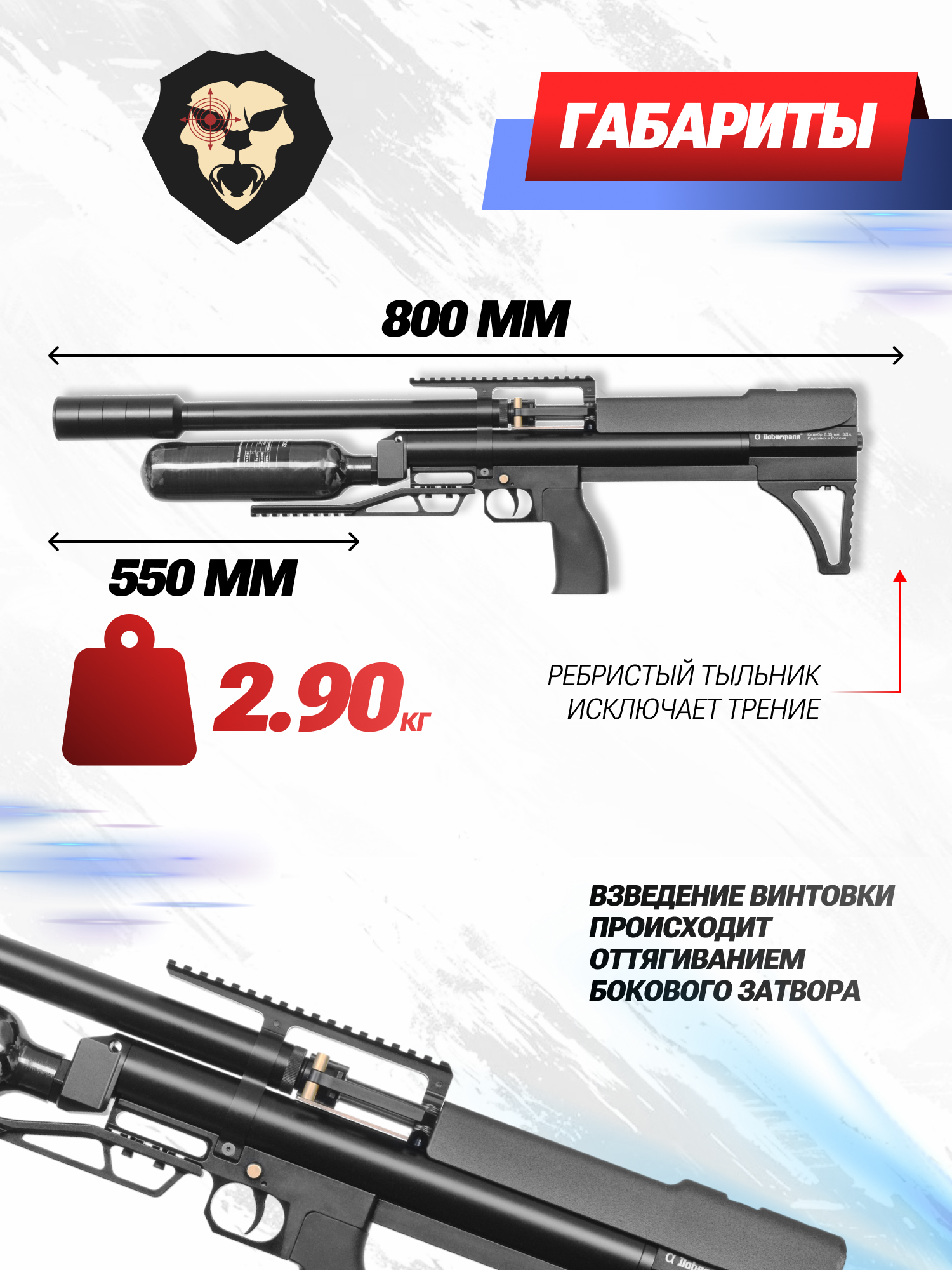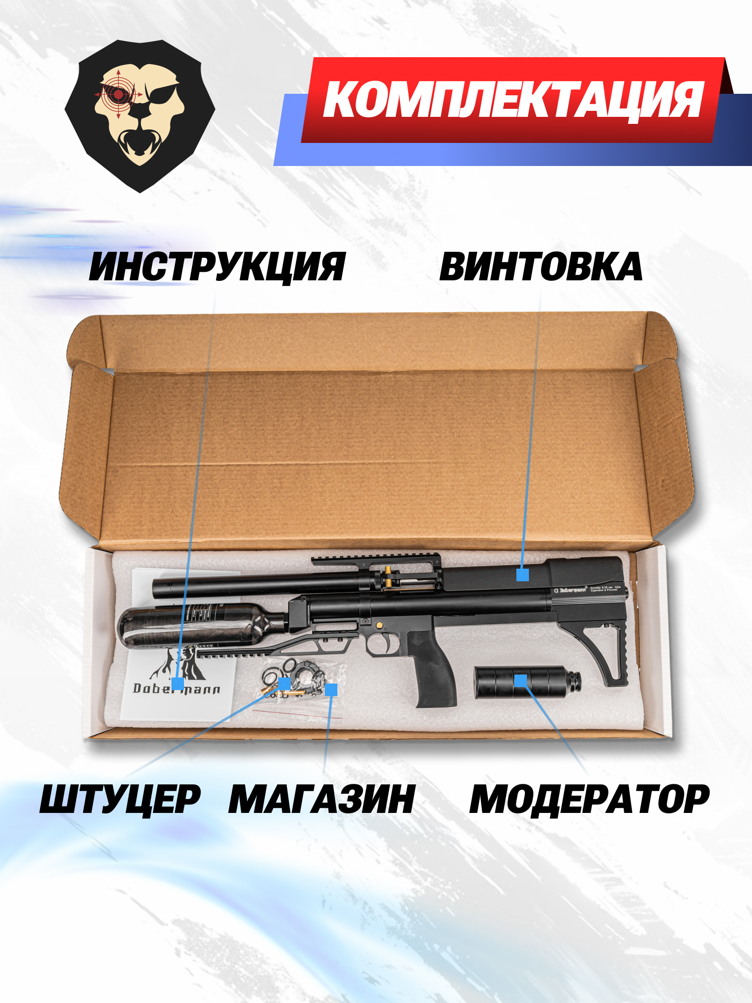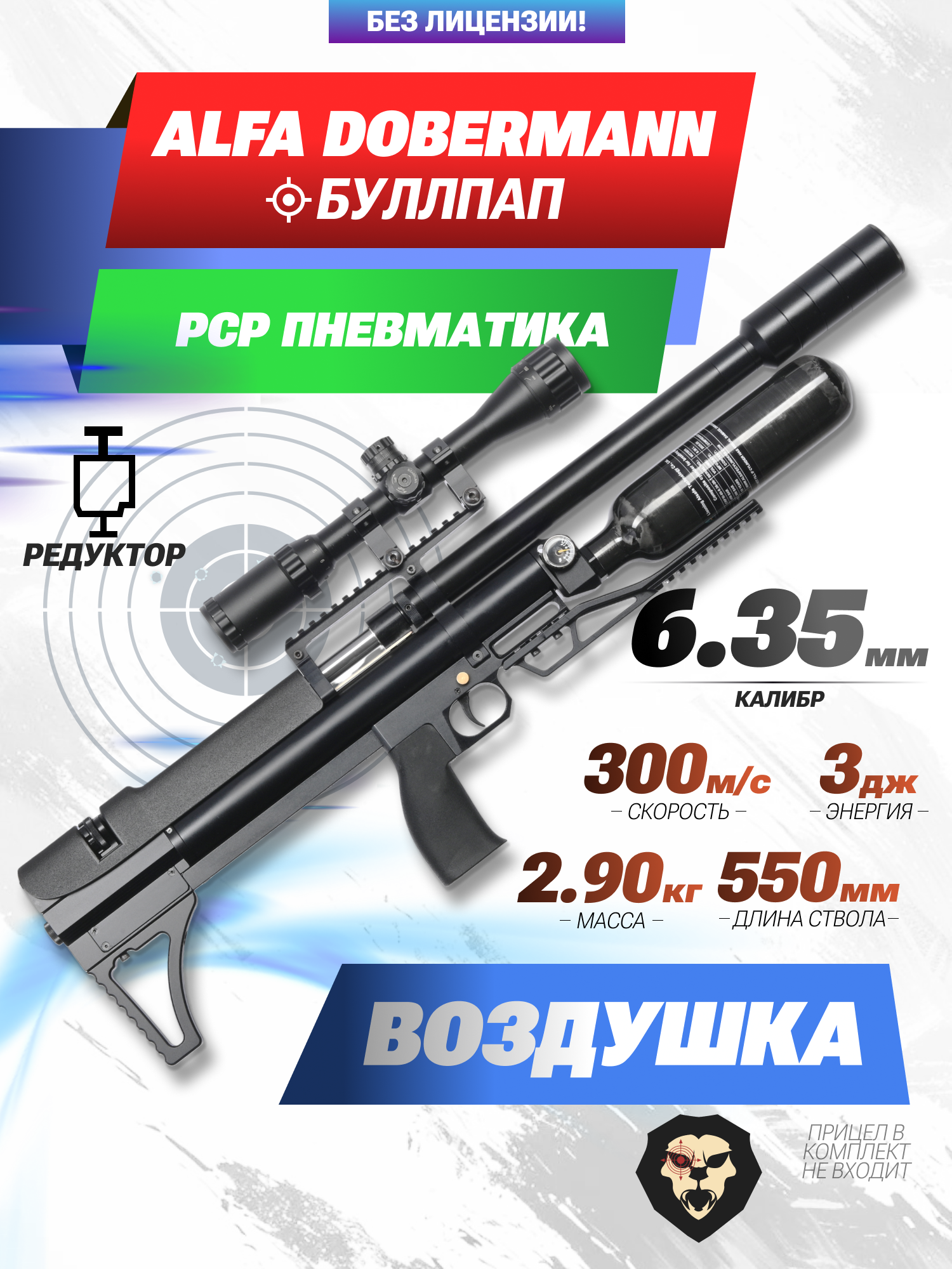 Пневматическая винтовка Alfa Dobermann Буллпап 6.35 мм (550 мм, редуктор, стандарт, модератор 44 мм, колба, передний взвод) купить в интернет-магазине Popadiv10.