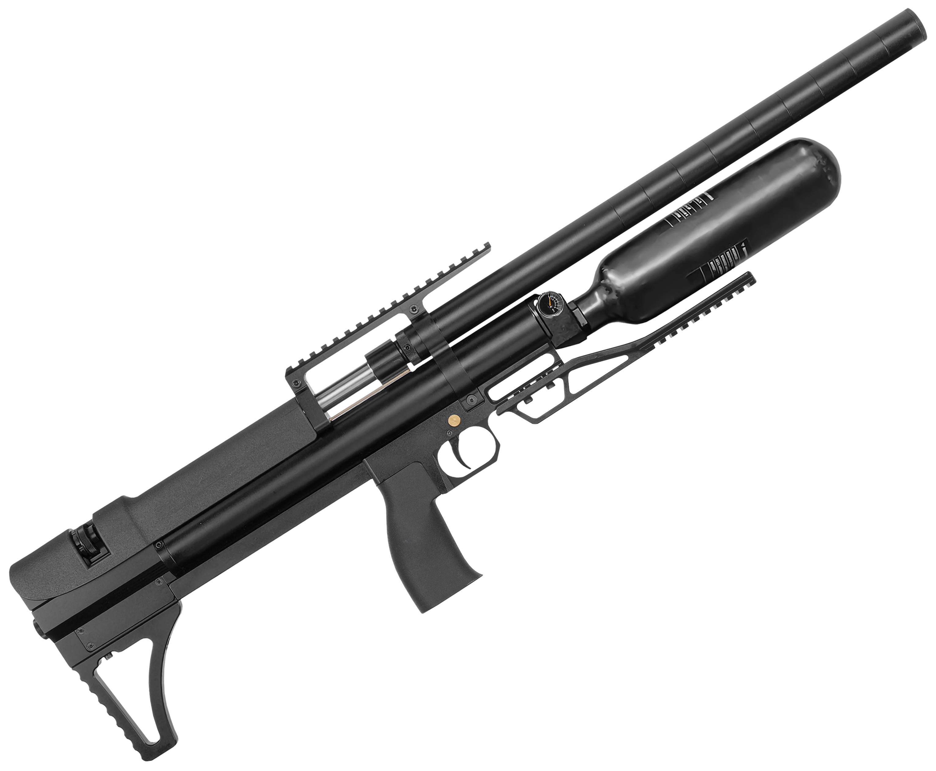 Пневматическая винтовка Alfa Dobermann Буллпап 6.35 мм (550 мм, редуктор, стандарт, под полнотел, модератор 29 мм, колба, передний взвод) купить в интернет-магазине Popadiv10.
