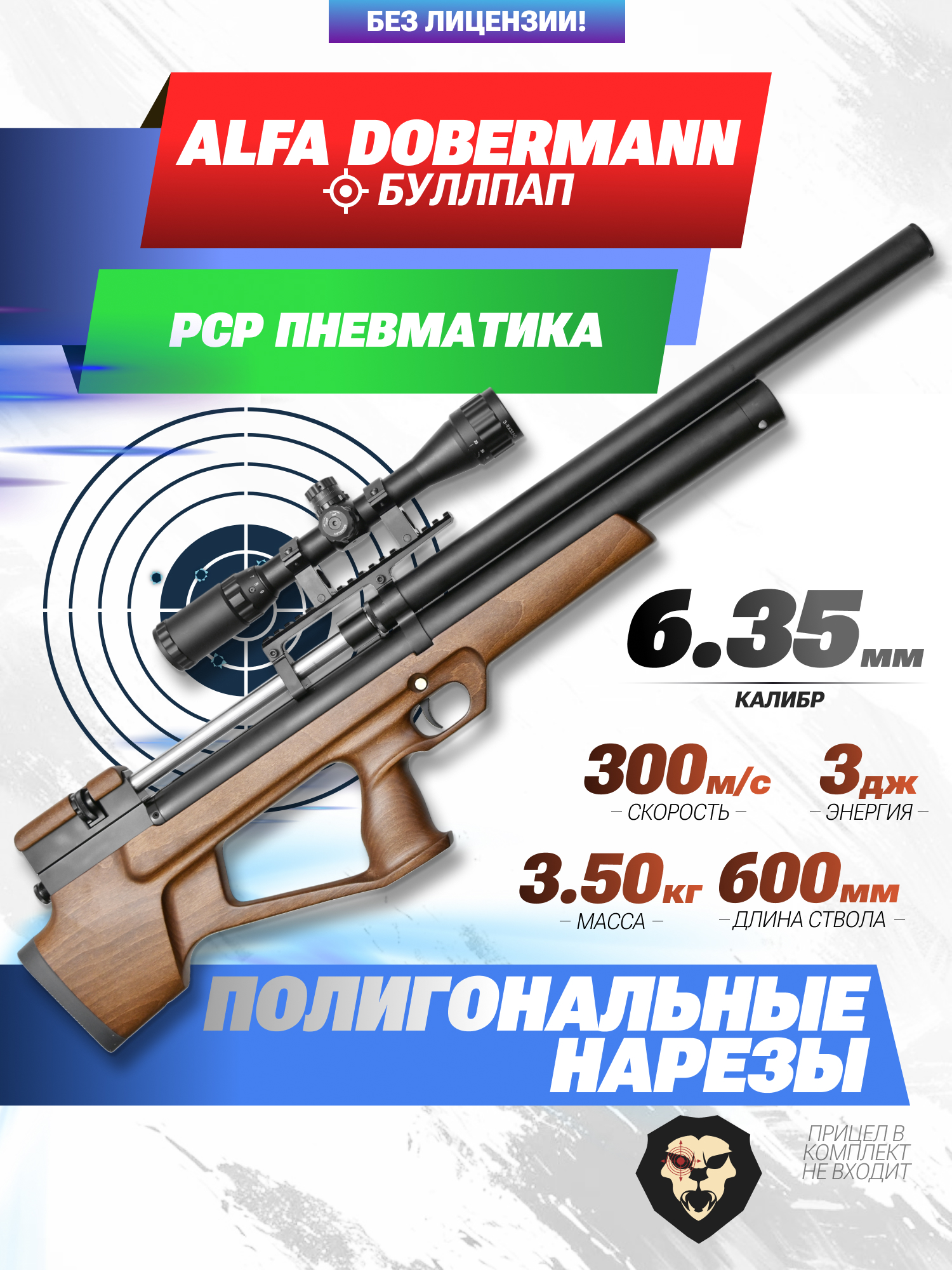 Пневматическая винтовка Alfa Dobermann Буллпап 6.35 мм (600 мм, полигональные нарезы, дерево, передний взвод) купить в интернет-магазине Popadiv10.