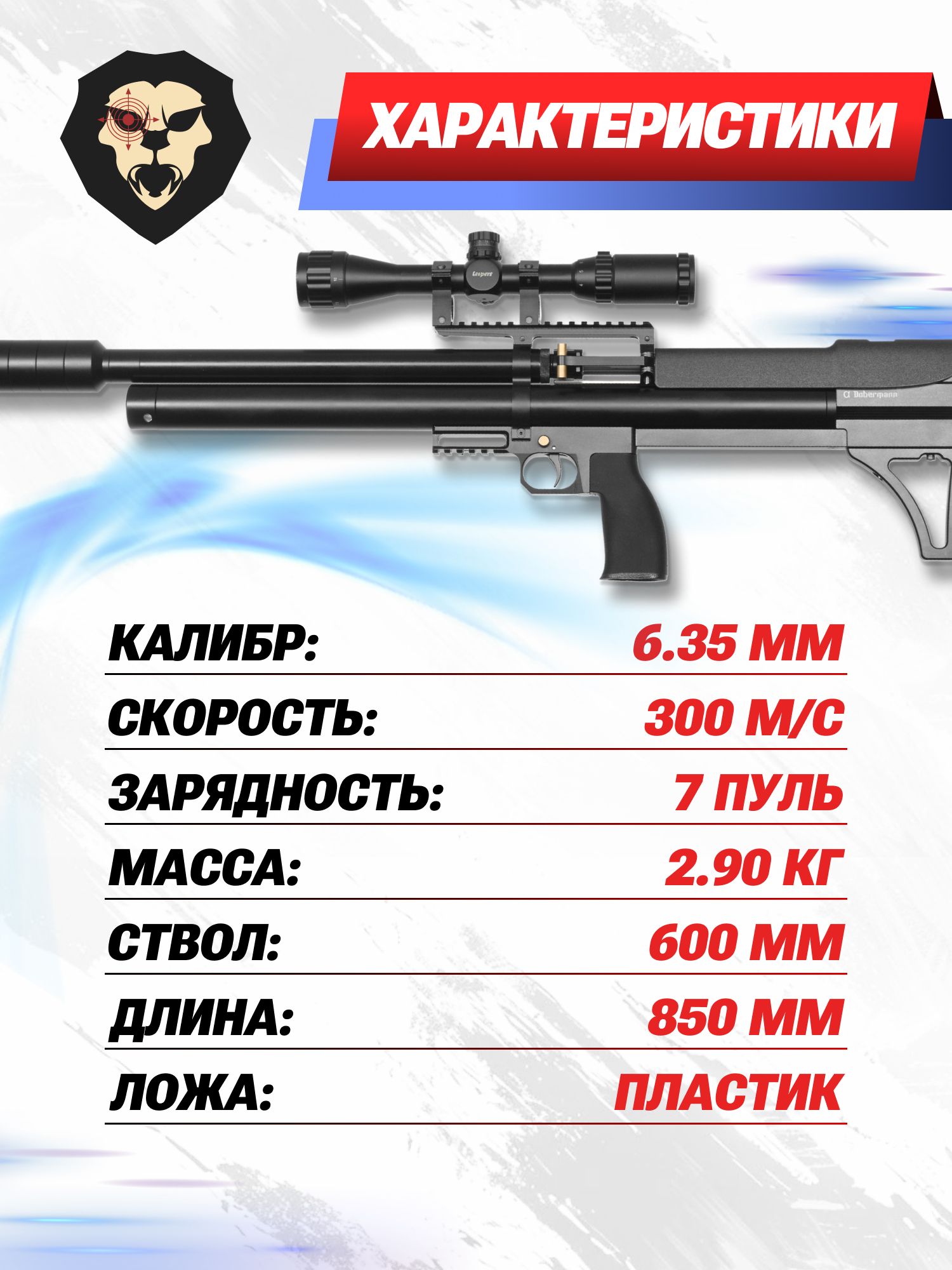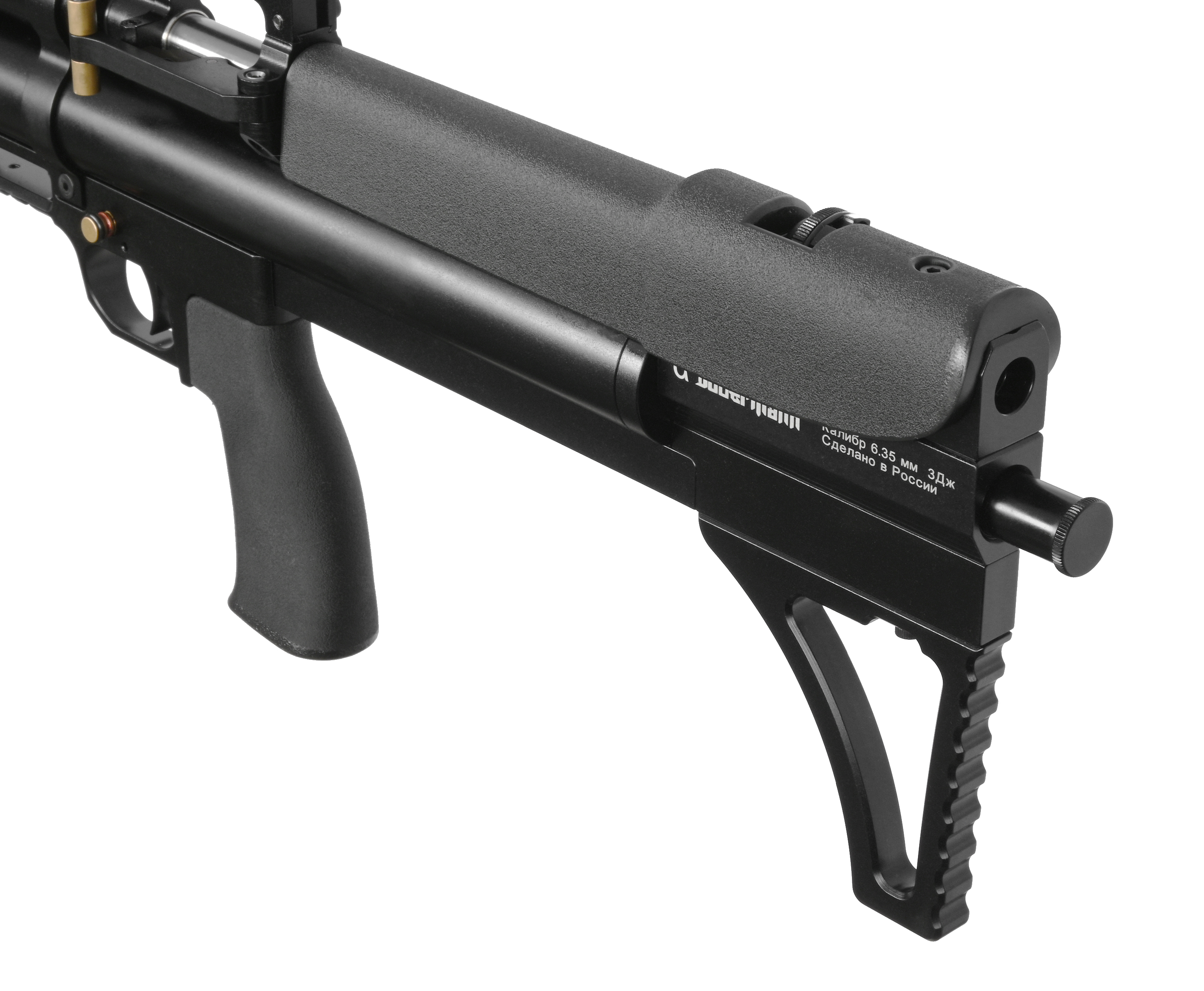 Серию Альфа БуллПап ПСП можно по праву назвать флагманской. Пневматика этой линейки готова к решению большого спектра задач - кроме стандартных образцов под классические воланчиковые боеприпасы, товарный ряд включает модели, предрасполагающие к стрельбе полнотелыми пулями. В их число входит рассматриваемая винтовка, которая оснащается удлиненным бланком с сечением 6.35 мм.