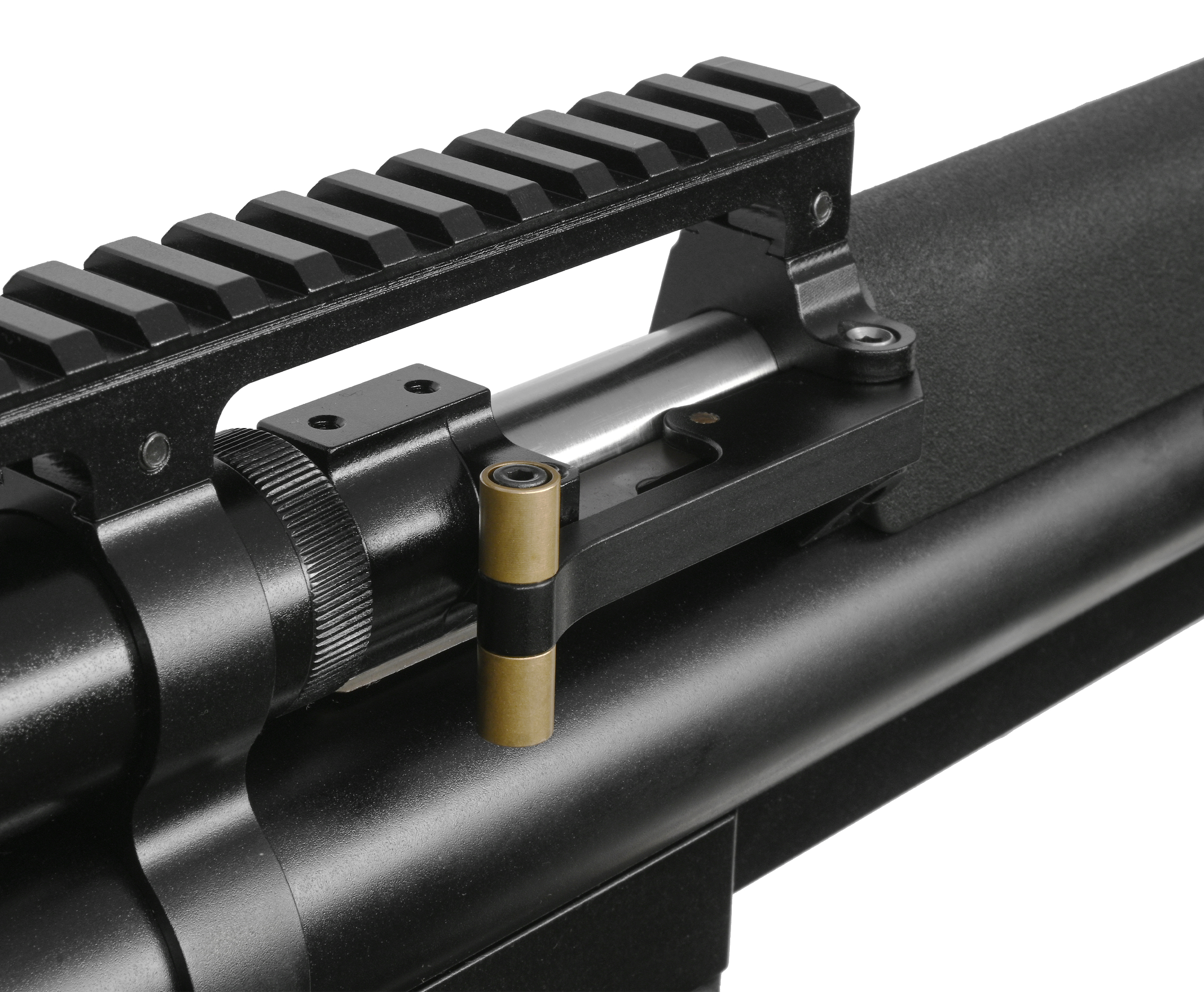 Принцип действия изделия основан на использовании сжатого под большим давлением воздуха, нагнетаемого во встроенный ресивер. Винтовка оборудована классическим линейным резервуаром на 345 куб. см, который заправляется компрессорами ВД. При накачке рекомендуется не превышать порог в 250 Бар для предотвращения чрезмерного износа уплотнителей.