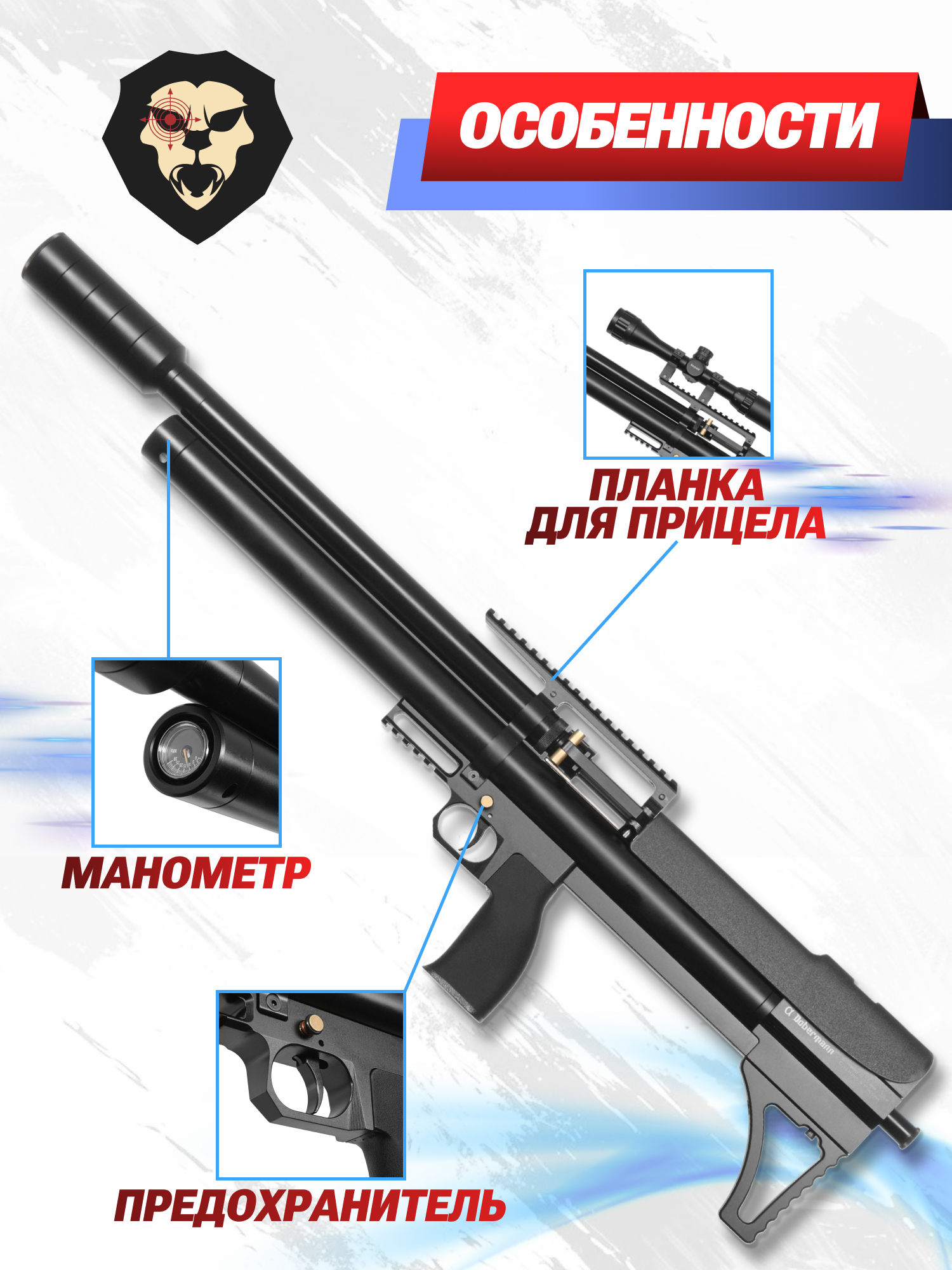 Пневматическая винтовка Alfa Dobermann БуллПап 6.35 мм (600 мм, прямоток, под полнотел, модератор 44 мм, передний взвод) купить в интернет-магазине Popadiv10.