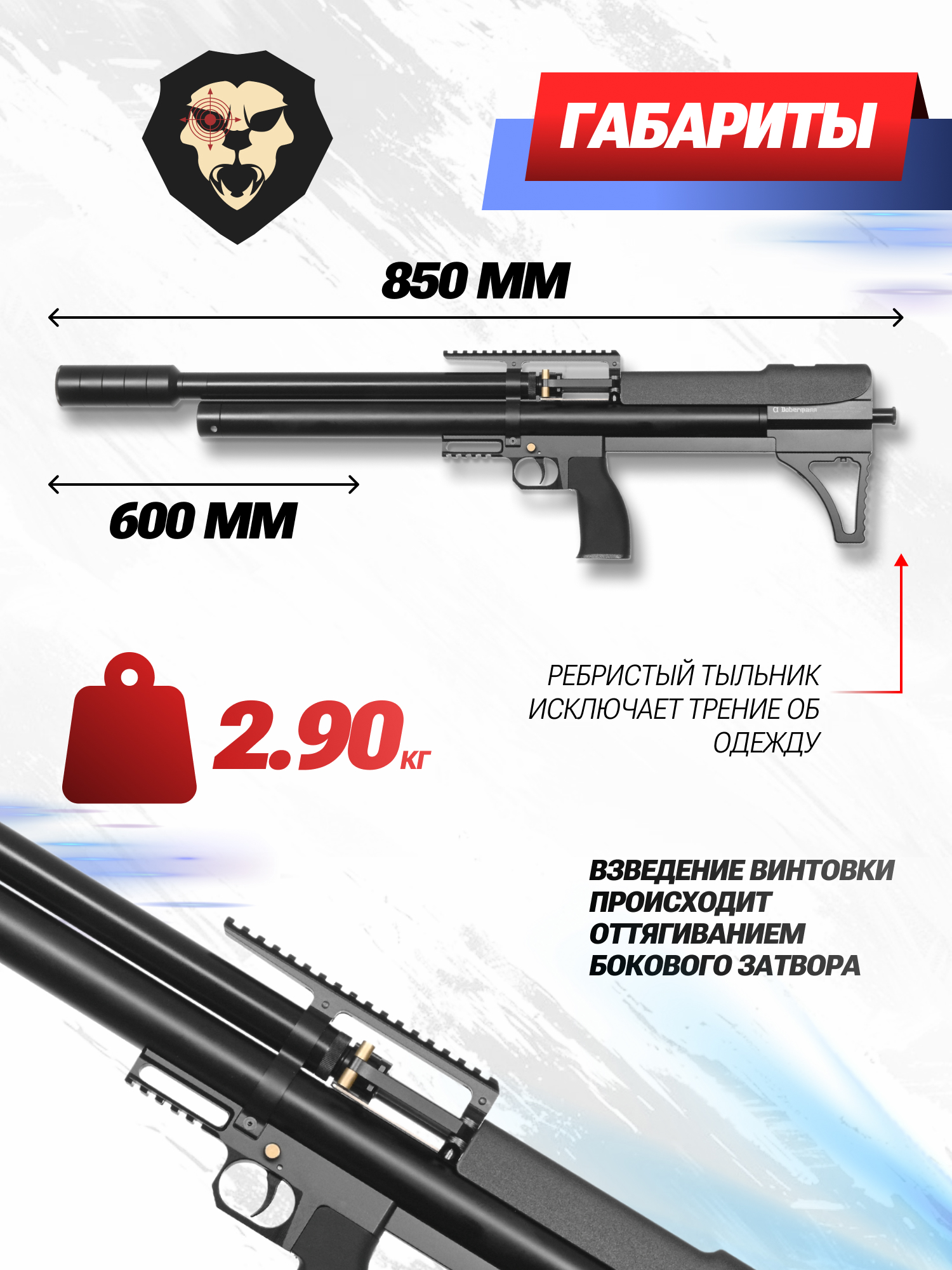 | Комплектация | Винтовка, магазин, заправочный штуцер, упаковка, краткая документация, копия сертификата (по запросу покупателя) |