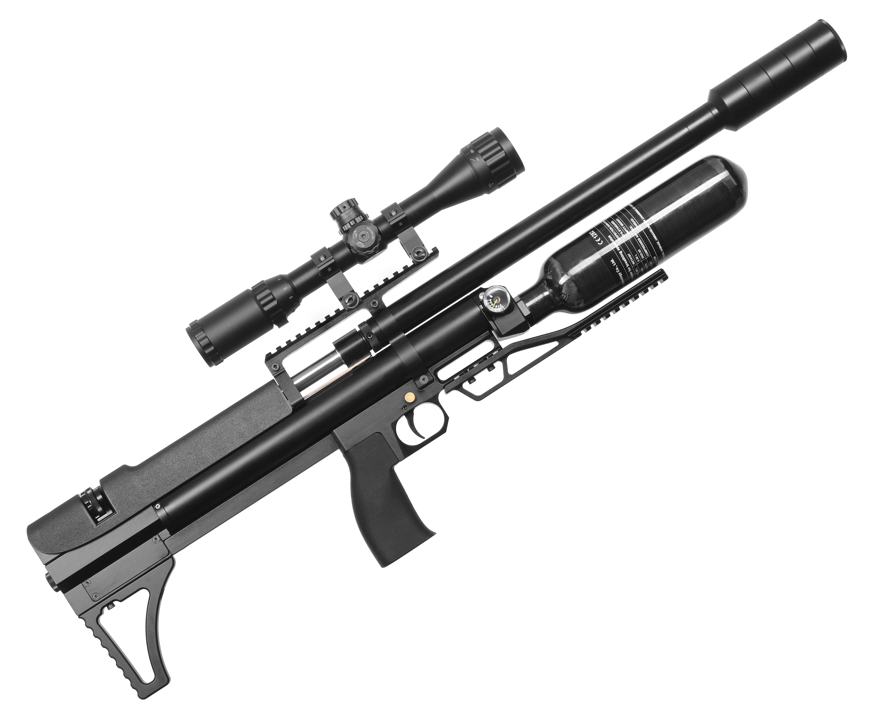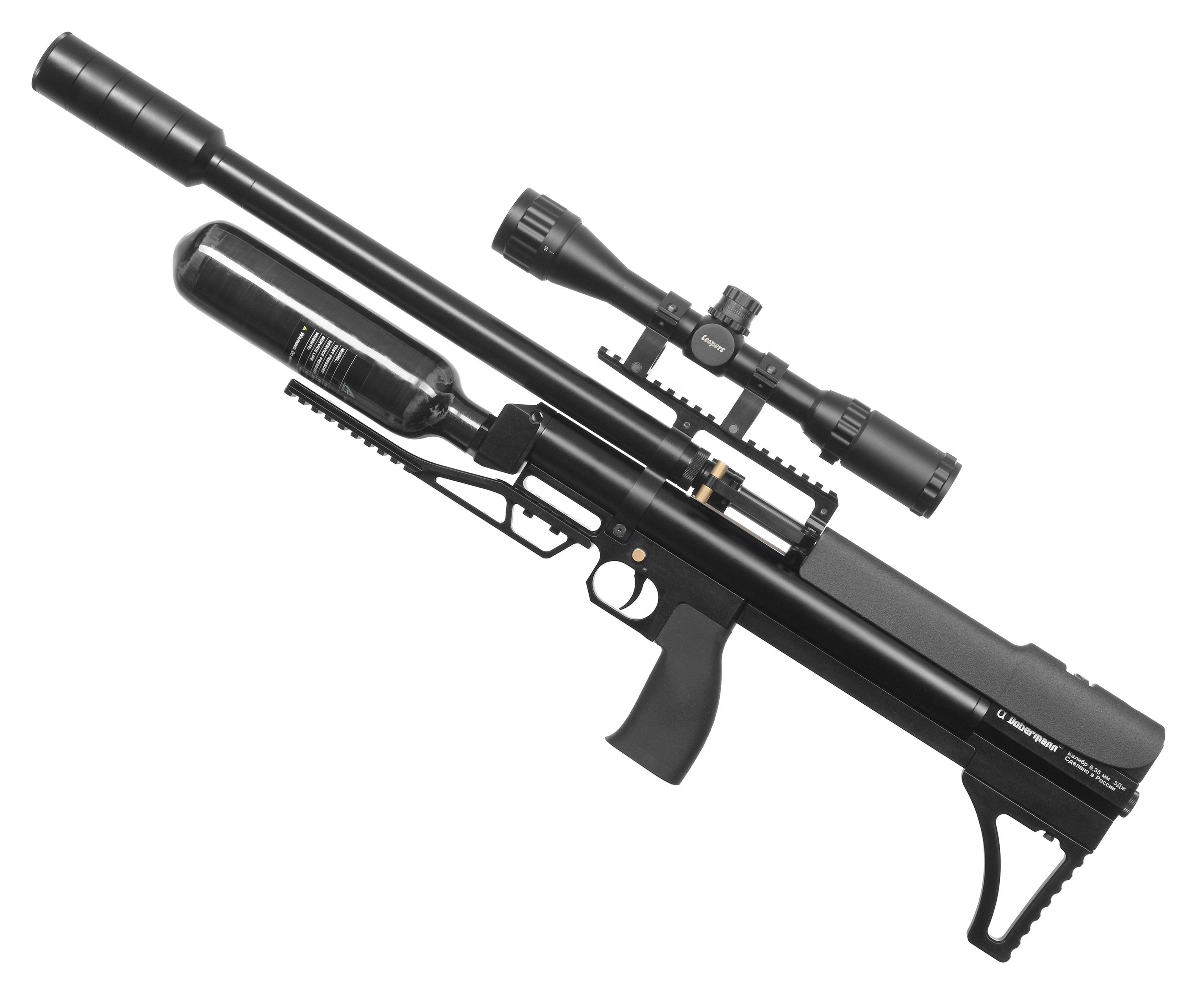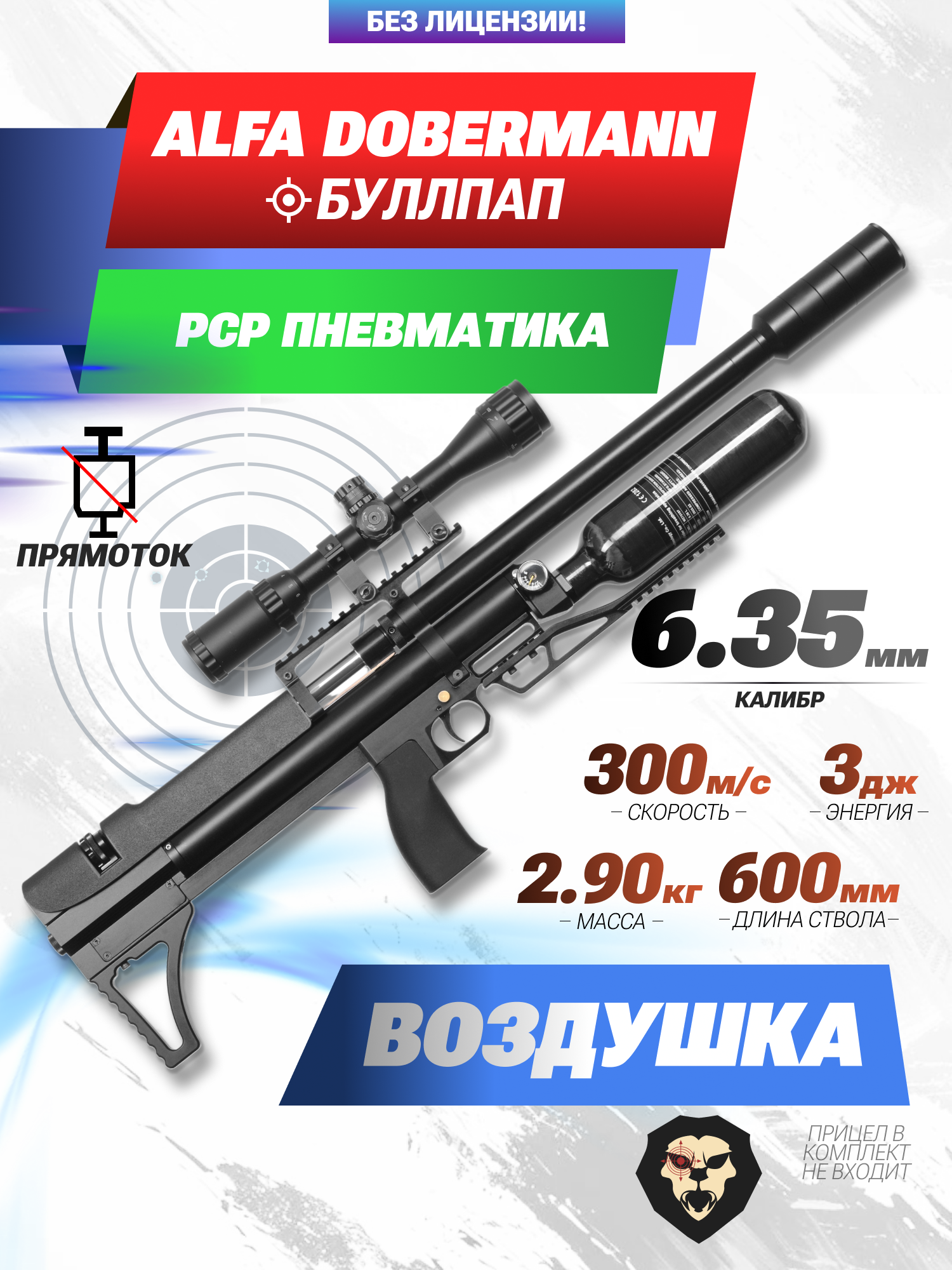 Пневматическая винтовка Alfa Dobermann Буллпап 6.35 мм (600 мм, прямоток, стандарт, модератор 44 мм, колба, передний взвод) купить в интернет-магазине Popadiv10.
