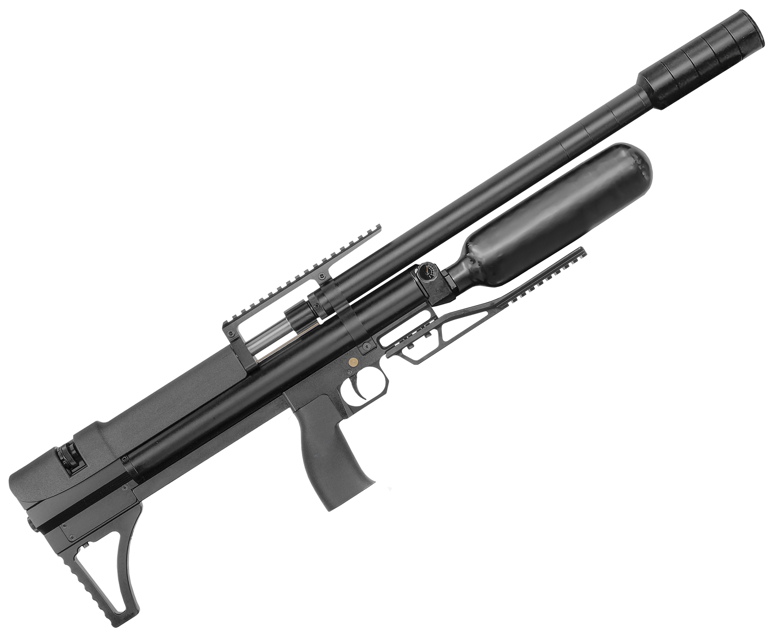 Другой отличительной чертой винтовки из обновленной линейки Alfa Bull-Pup выступает колбовый ресивер. Хранилище повышенной вместимости 345 кубических сантиметров грамотно совмещается с линейной системой, что в сумме дает до 550 куб. см в объем. На практике такая комбинация позволяет совершить больше выстрелов с одной заправки.