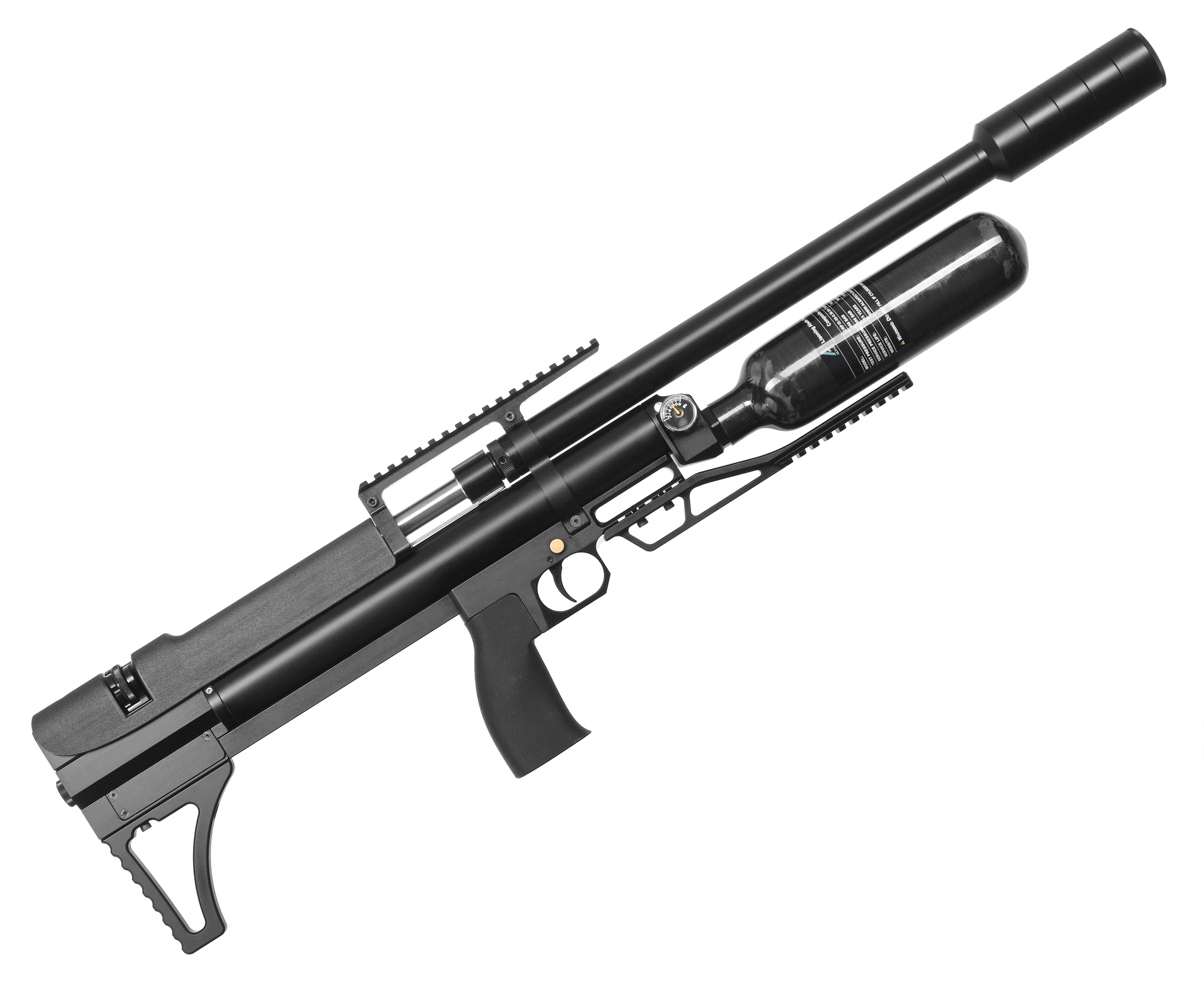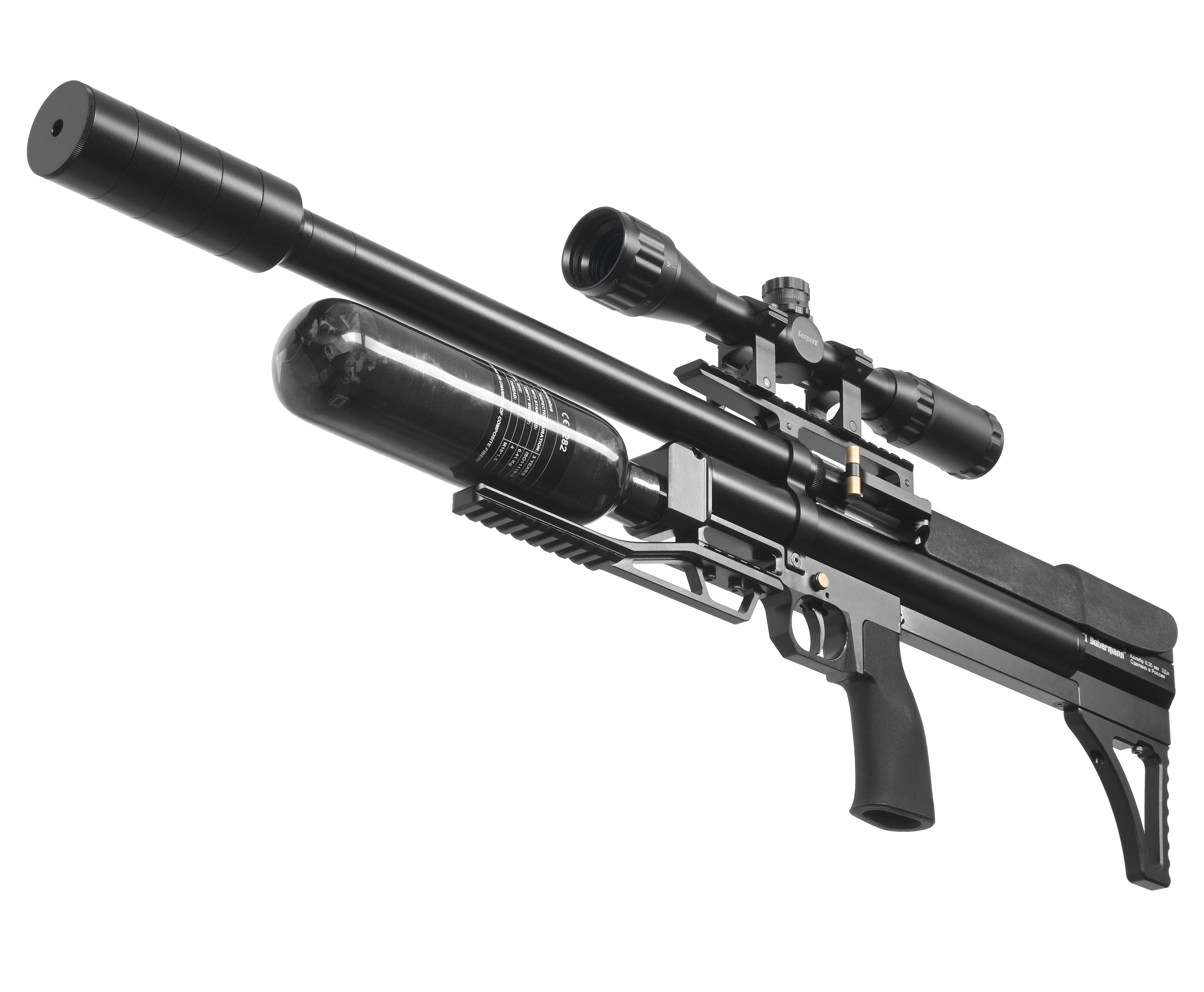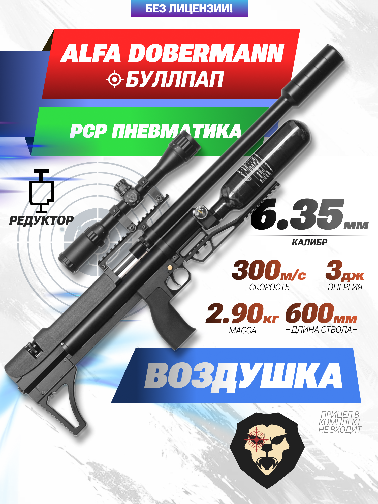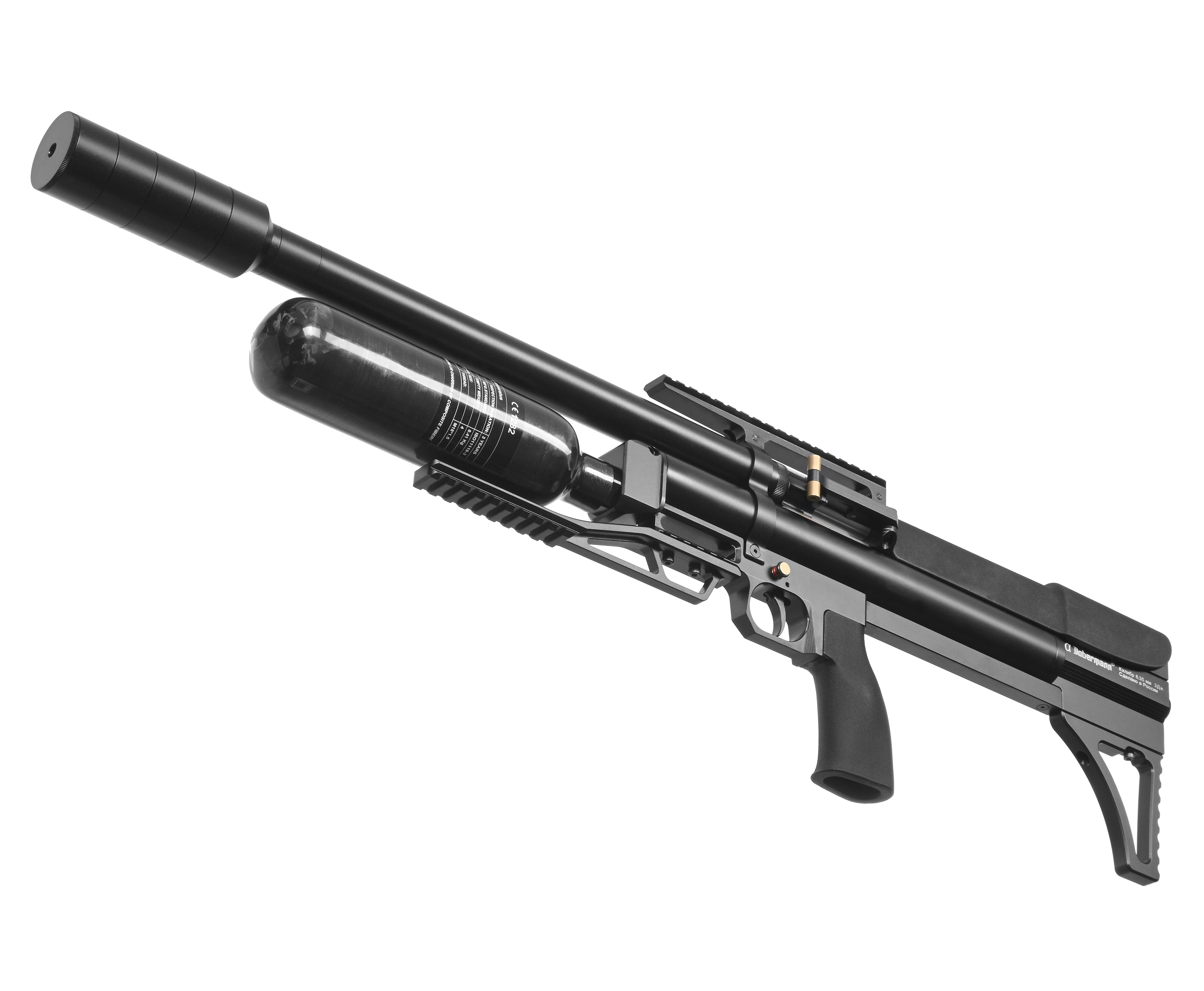 Пневматическая винтовка Alfa Dobermann Буллпап 6.35 мм (600 мм, редуктор, стандарт, модератор 44 мм, колба, передний взвод) купить в интернет-магазине Popadiv10.