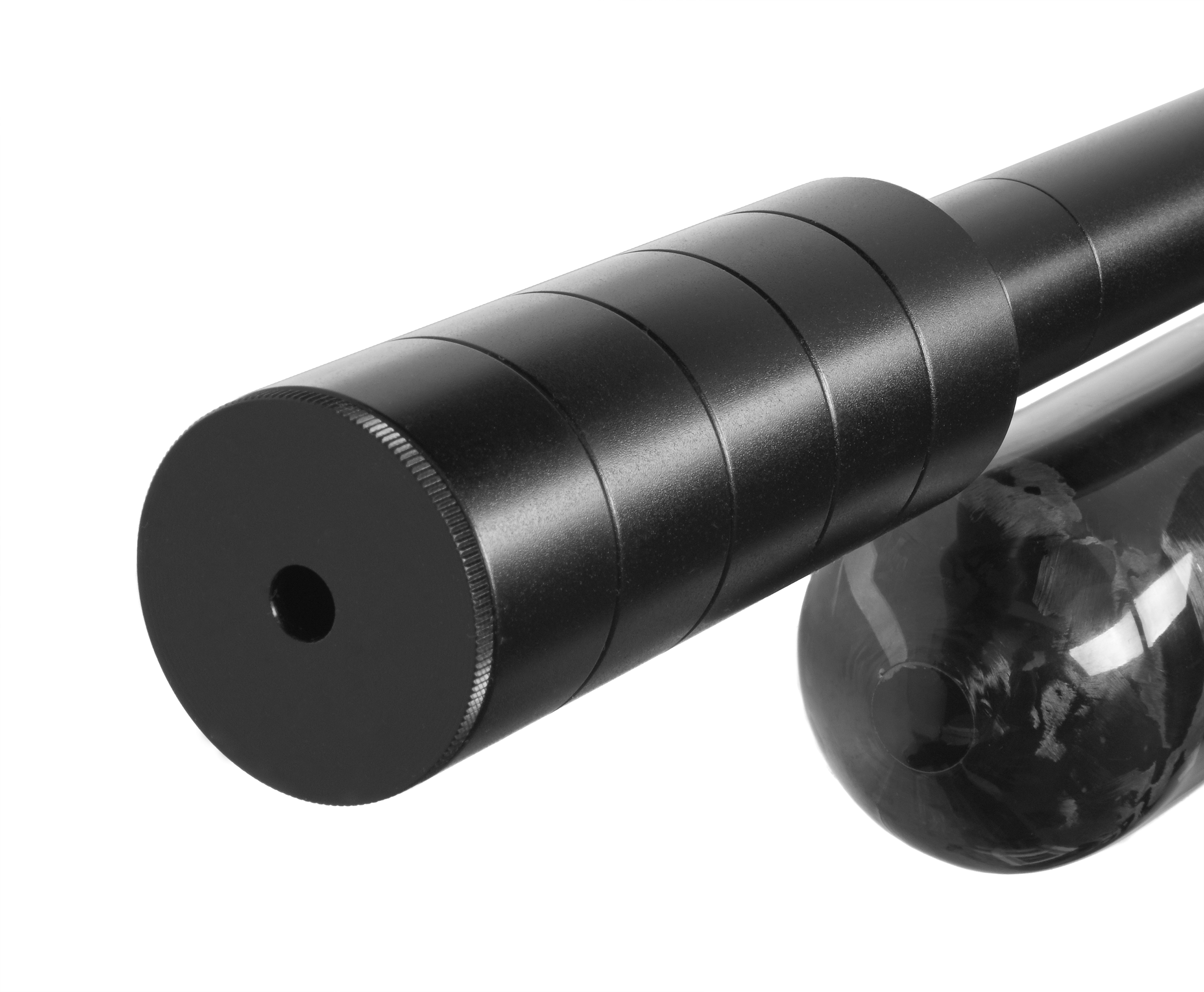 В свою очередь колба 345 куб. см, дополняющая штатный линейный ресивер, позволяет достичь большего суммарного объема. Показатель в результате совмещения достигает 550 кубических сантиметров. Разъем для подключения насосов через штуцер расположен в основании баллона - там же есть манометр для контроля текущего давления.