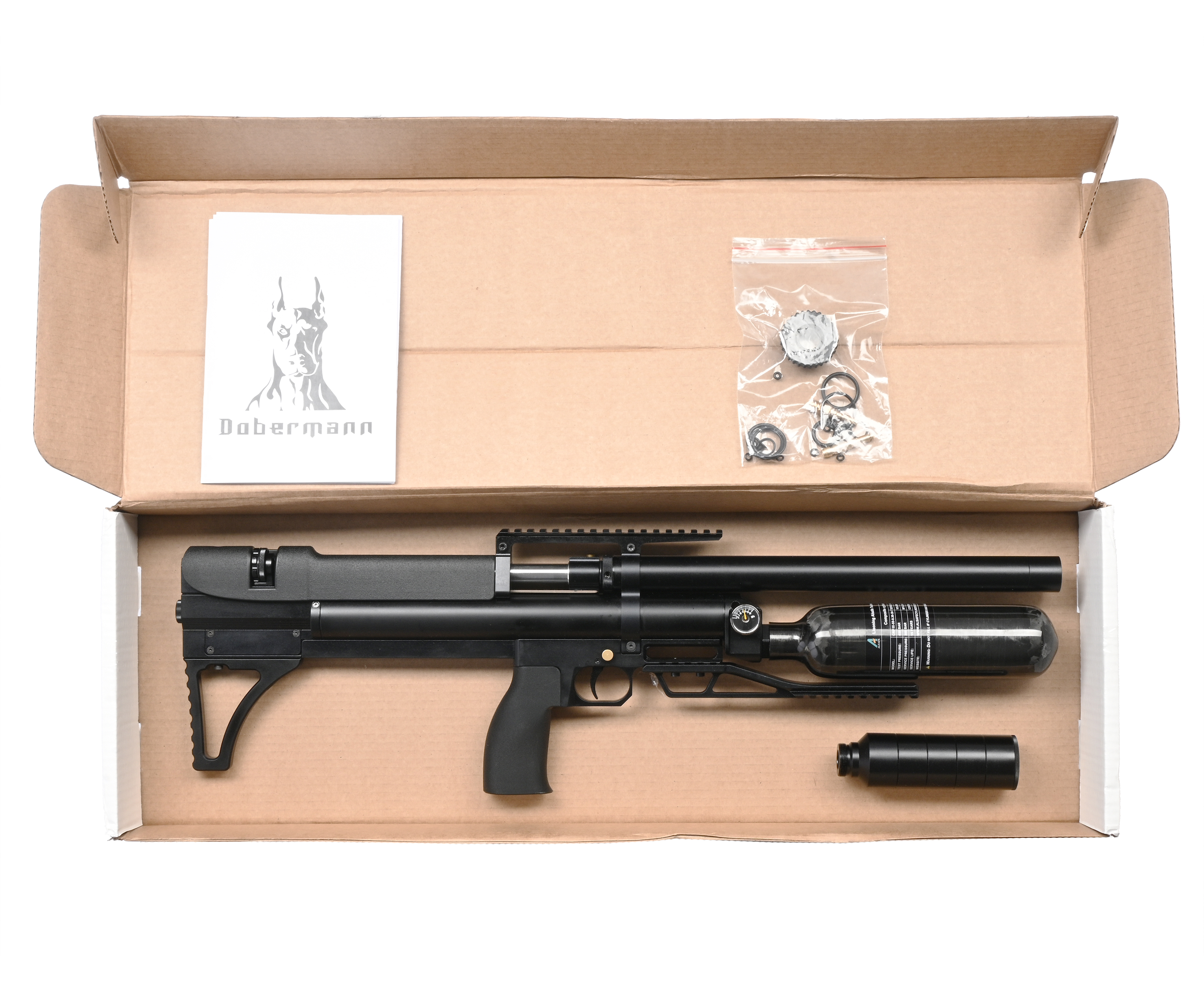 В ПСП пневматике количество доступных выстрелов напрямую зависит от объема накачки резервуара. Стандартные ресиверы из-за своего устройства имеют предел, обусловленный размером баллона, который не должен выходить за ствол и повышать габариты оружия. Инженеры фирмы Доберман решили данную проблему путем совмещения системы с колбой.