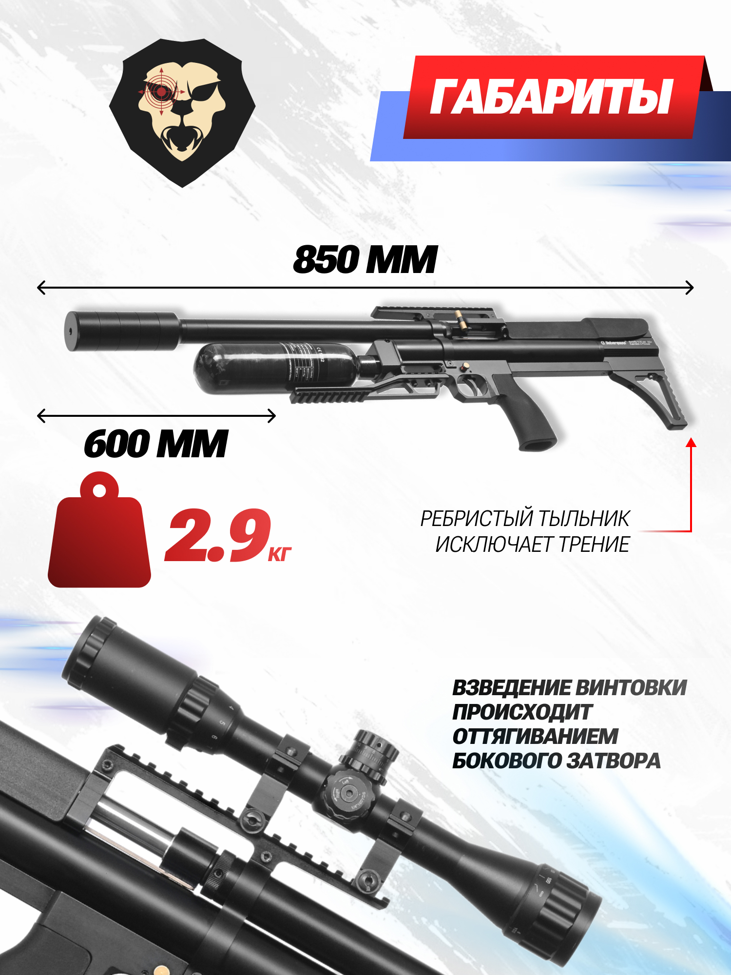 | Комплектация | Винтовка, магазин, заправочный штуцер, упаковка, краткая документация, копия сертификата (по запросу покупателя) |