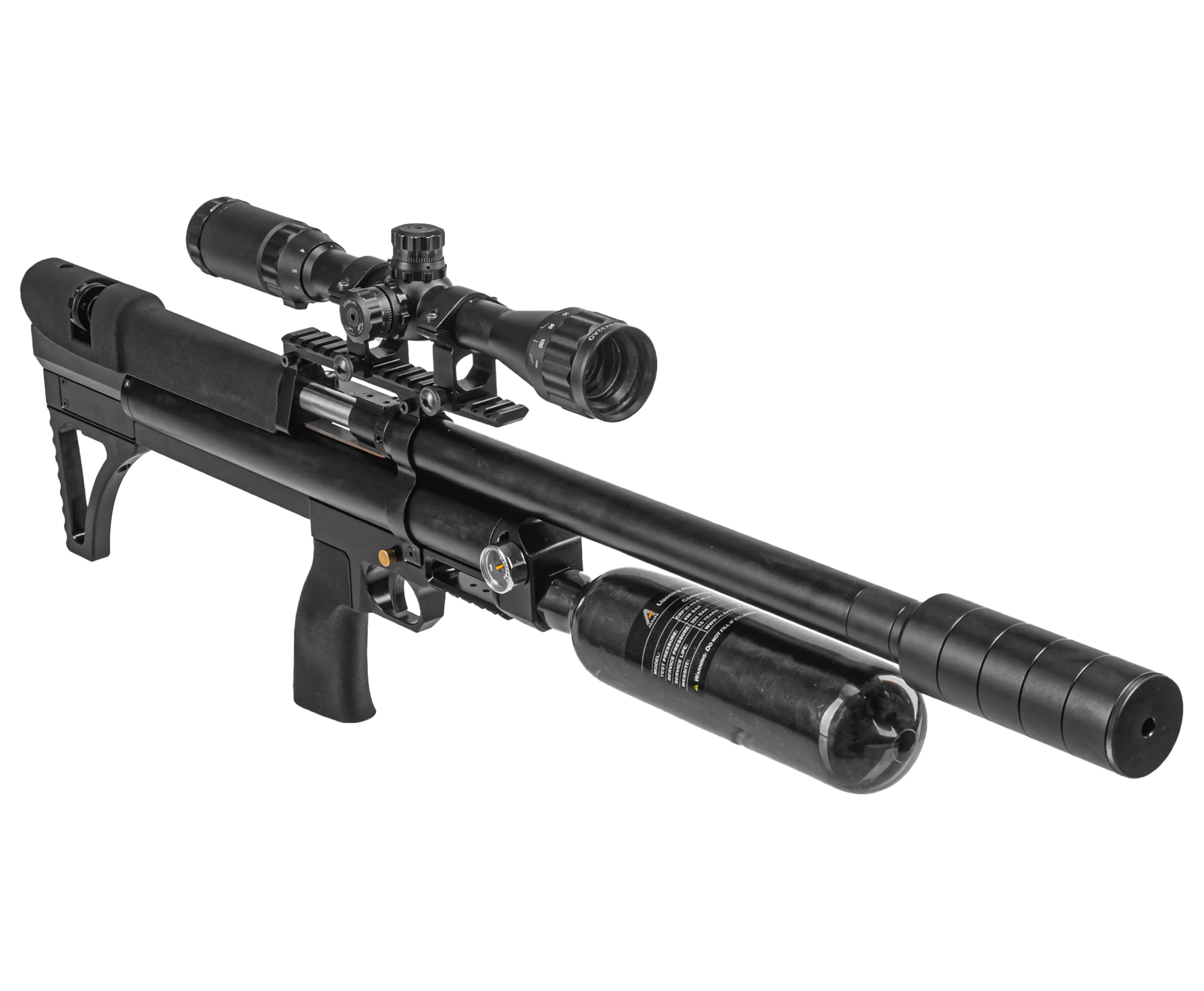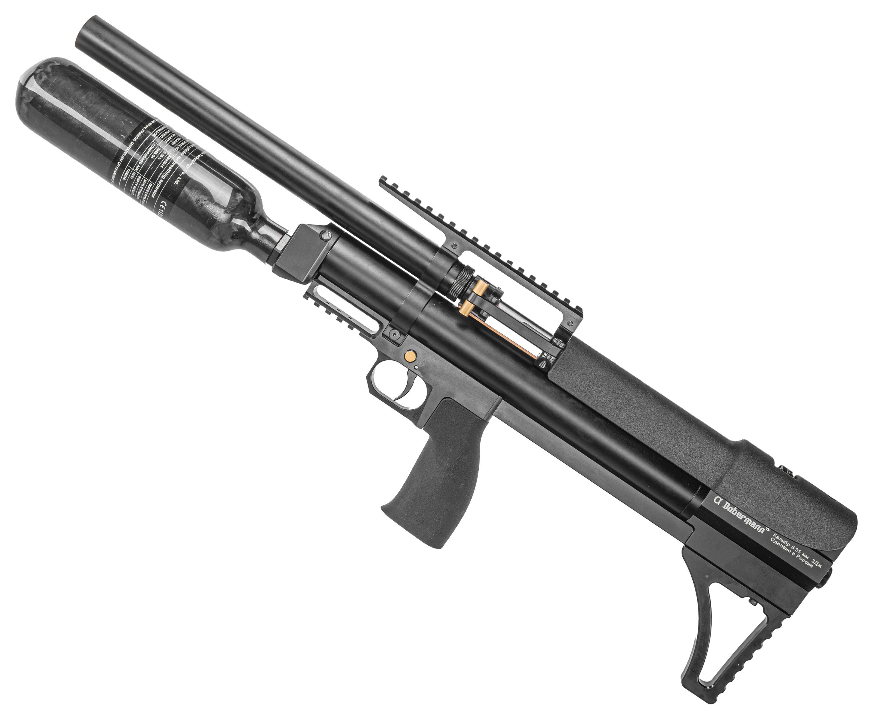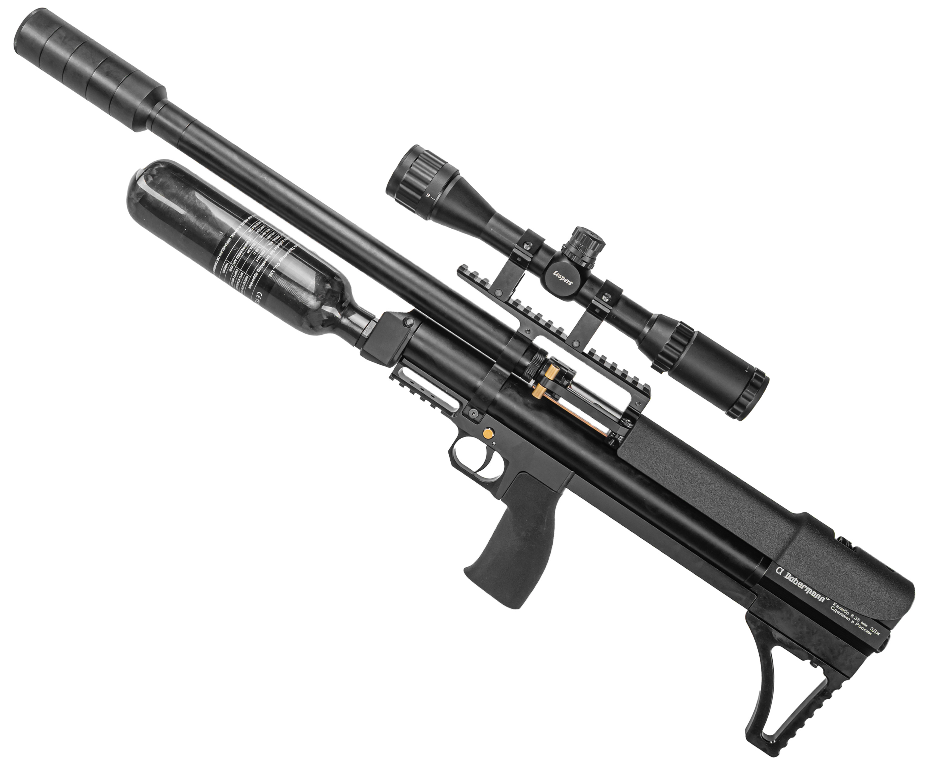 Пневматическая винтовка Alfa Dobermann Буллпап 6.35 мм (600 мм, редуктор, стандарт, под полнотел, модератор 44 мм, колба, передний взвод) купить в интернет-магазине Popadiv10.