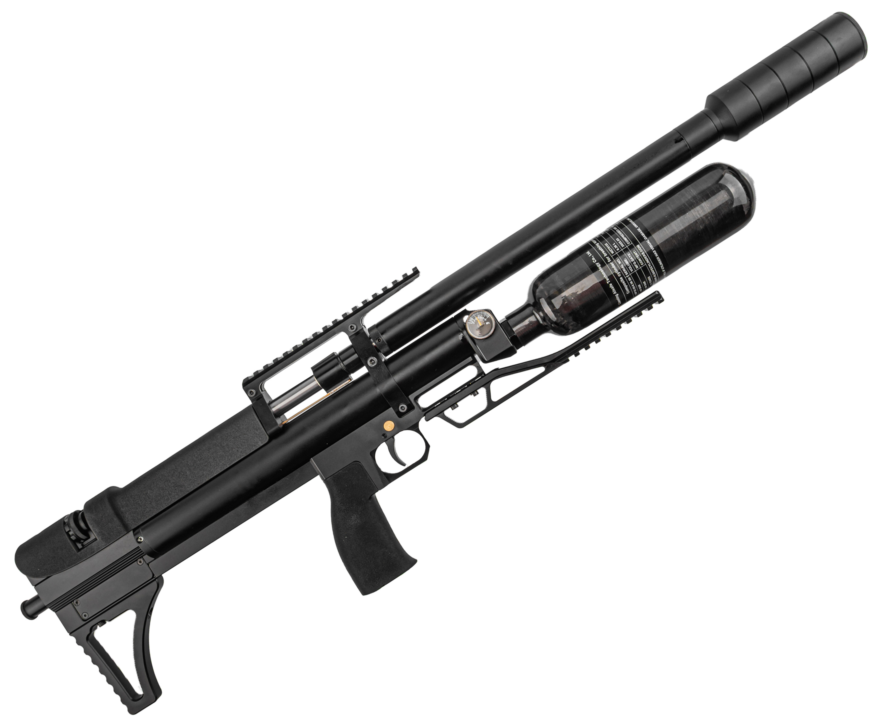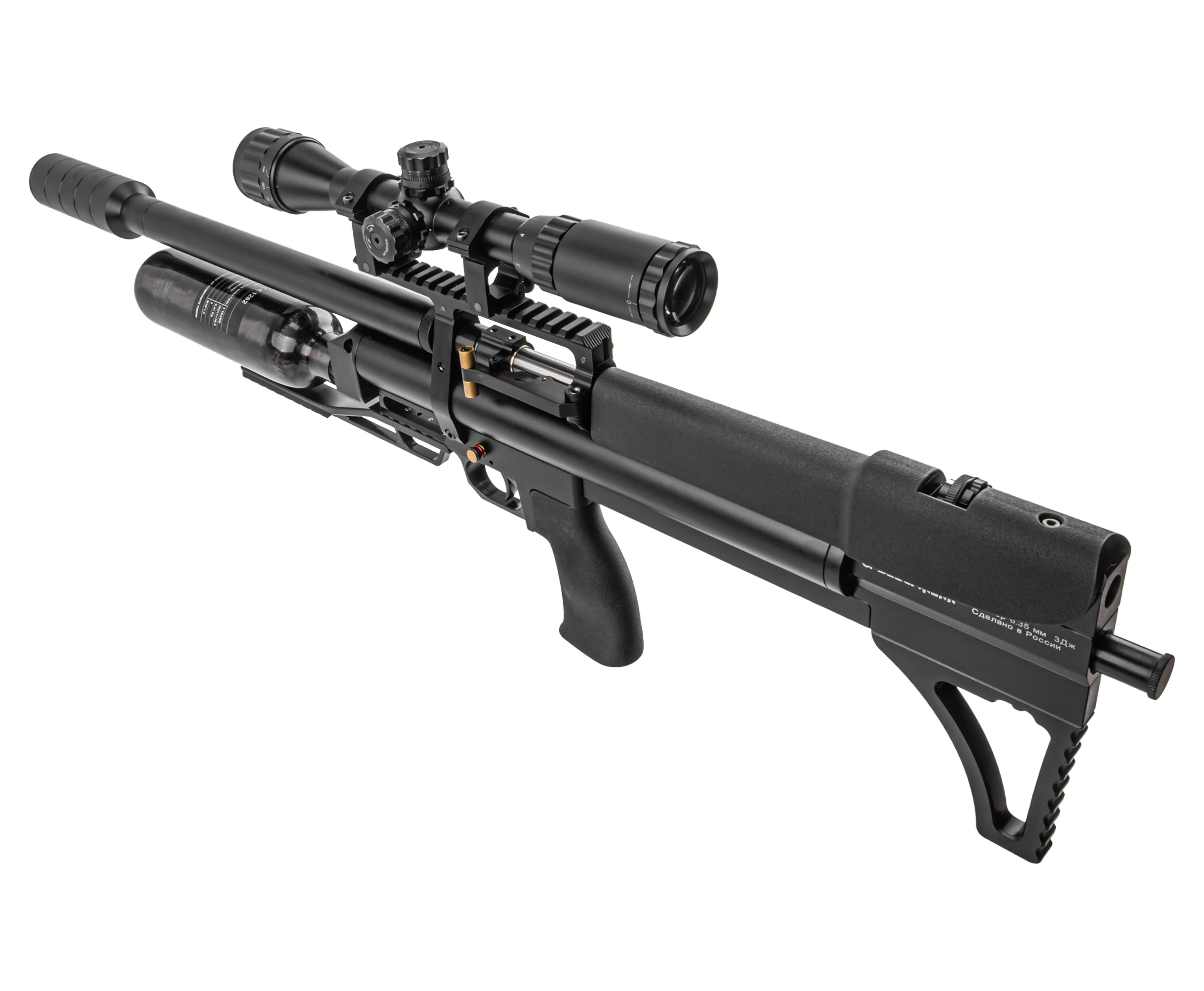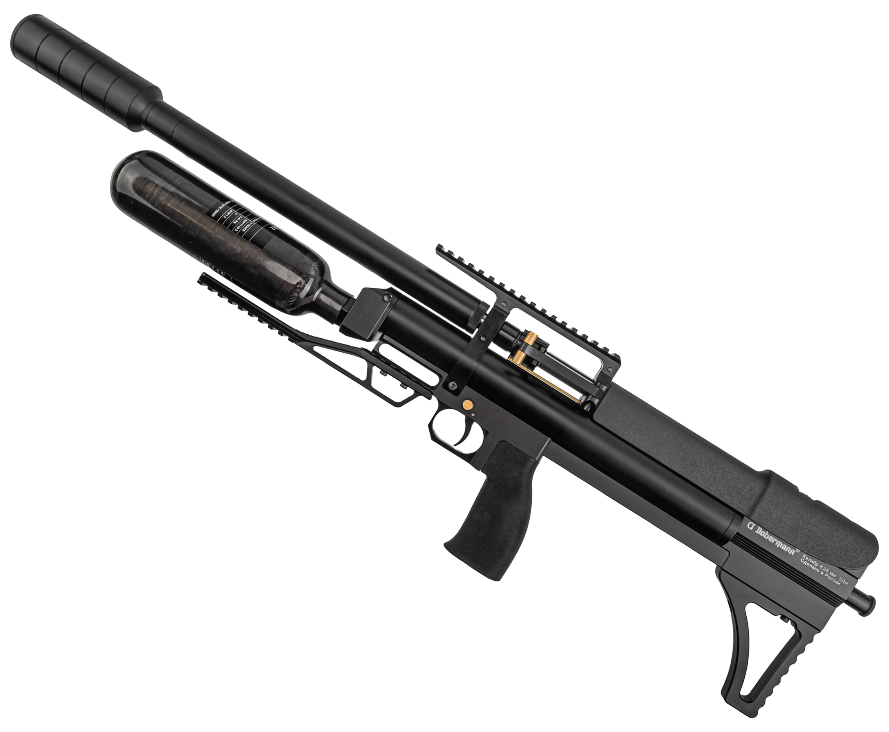 Пневматическая винтовка Alfa Dobermann Буллпап 6.35 мм (600 мм, редуктор, стандарт, под полнотел, модератор 44 мм, колба, передний взвод) купить в интернет-магазине Popadiv10.