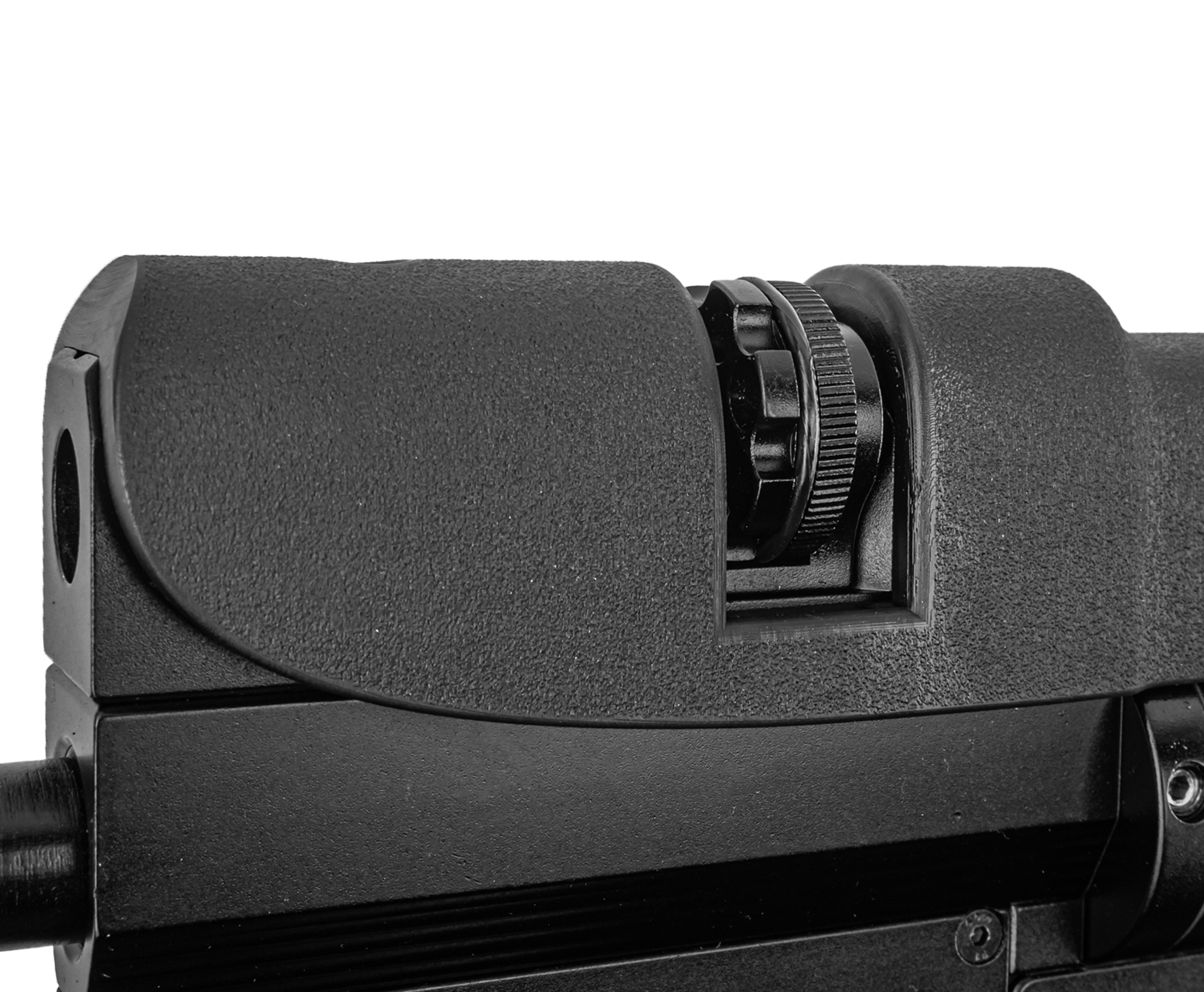 Реализовать потенциал точности модели поможет оптическое оборудование. Конструкция располагает к установке снайперского прицела на кольцах, совместимых с площадкой Weaver. Такая же RIS планка предусмотрена перед спусковой скобой - на нее или вспомогательный удлиняющий кронштейн по усмотрению владельца фиксируется предпочитаемый тактический обвес.