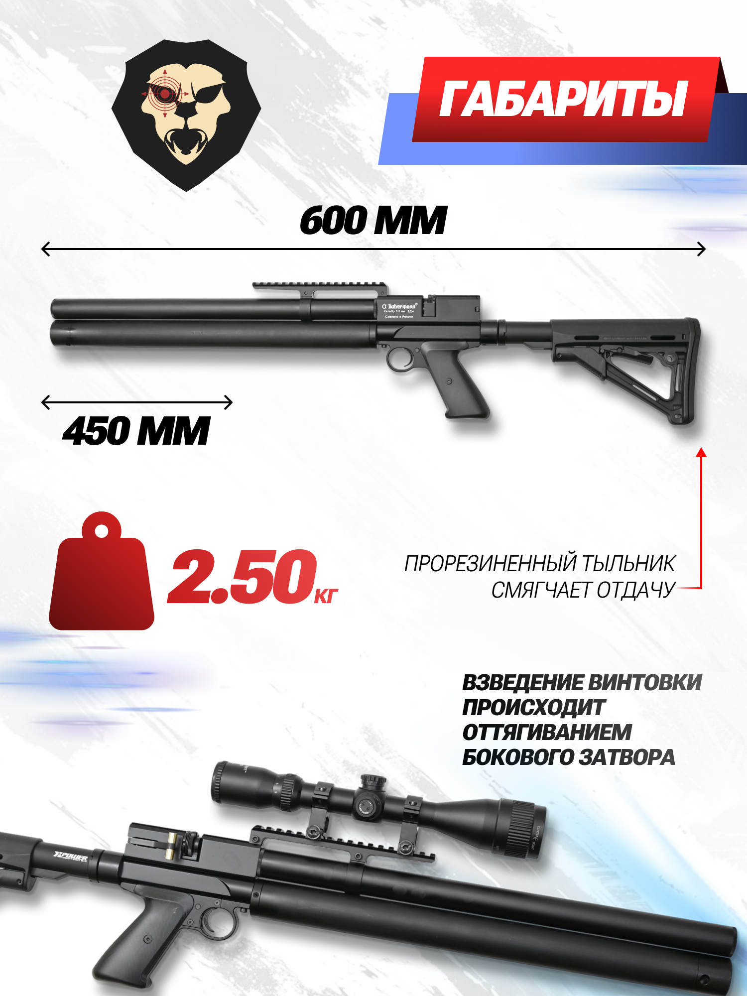 | Комплектация | Винтовка, упаковка, заправочный штуцер, краткая документация, копия сертификата (по запросу покупателя), магазин |