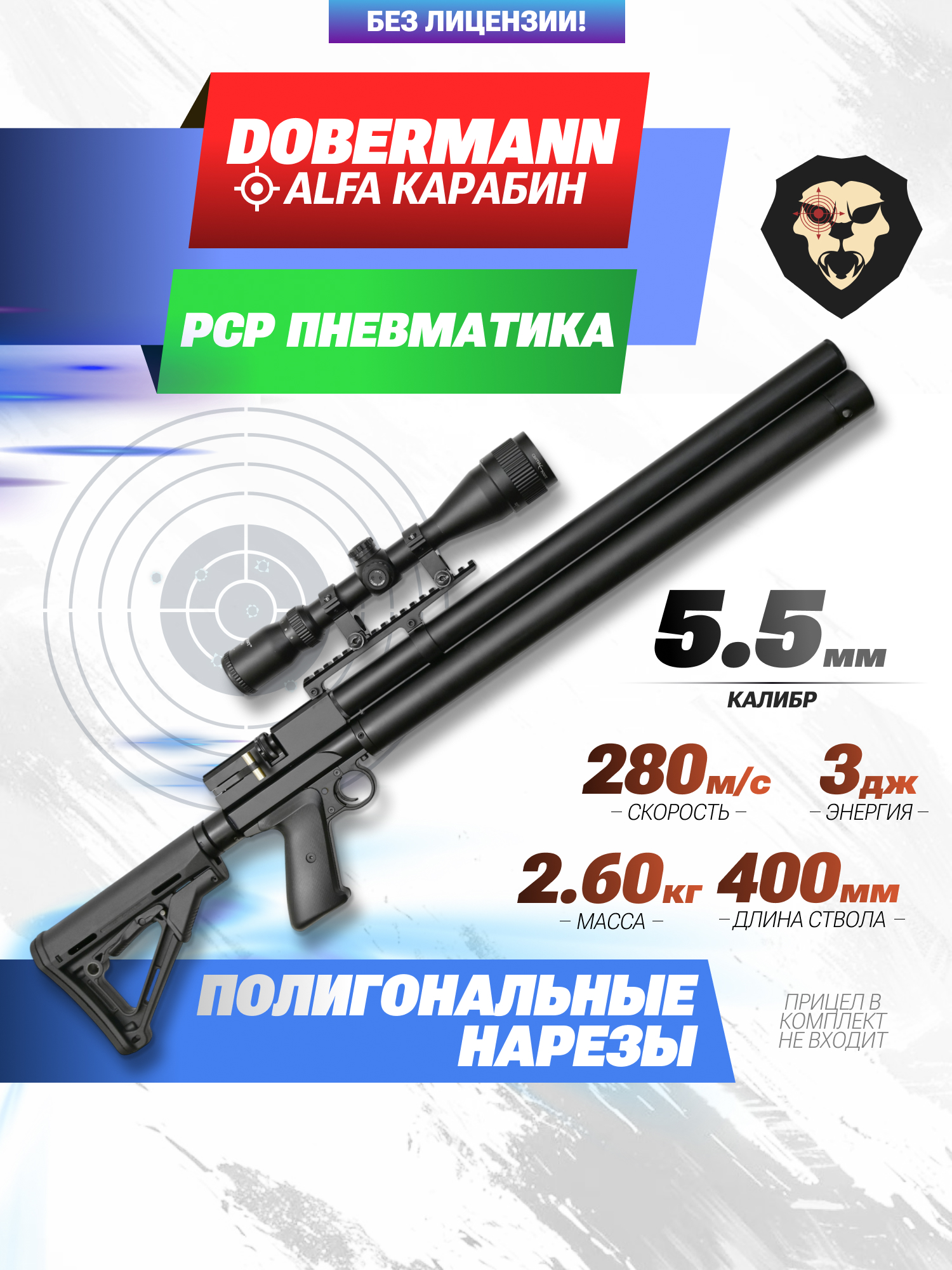 Пневматическая винтовка Alfa Dobermann Карабин 5.5 мм (PCP, ствол 400 мм, полигональные нарезы) текущий товар