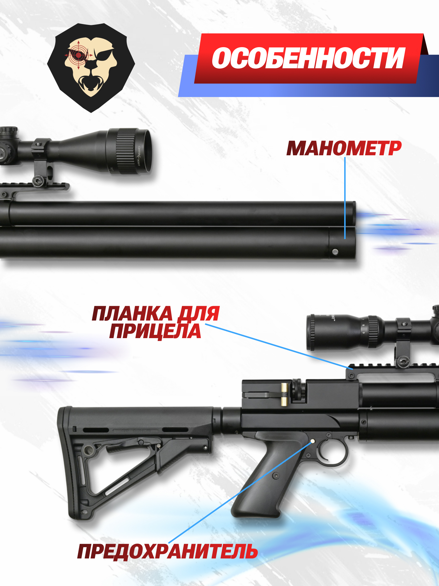 Комплектация Винтовка, магазин, набор запасных РТИ, ключ для манометра, упаковка, заправочный штуцер, краткая документация, копия сертификата (по запросу покупателя)