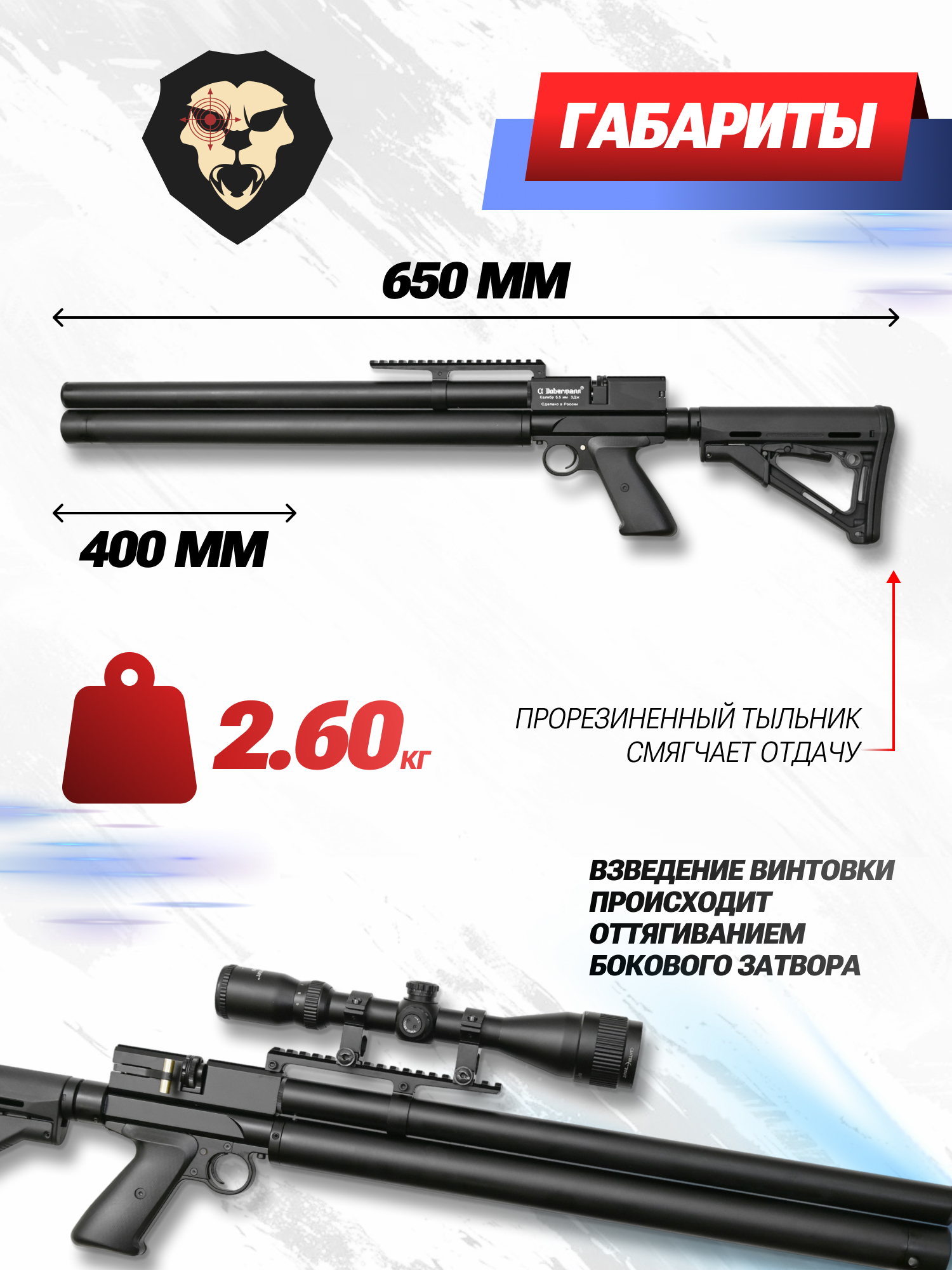 Информация о товаре "Пневматическая винтовка Alfa Dobermann Карабин 5.5 мм (PCP, ствол 400 мм, полигональные нарезы)" носит ознакомительный характер, и не является публичной офертой, определяемой положениями Статьи 437 Гражданского кодекса Российской Федерации, характеристики, внешний вид, цвет и комплектация могут быть изменены производителем без уведомления.