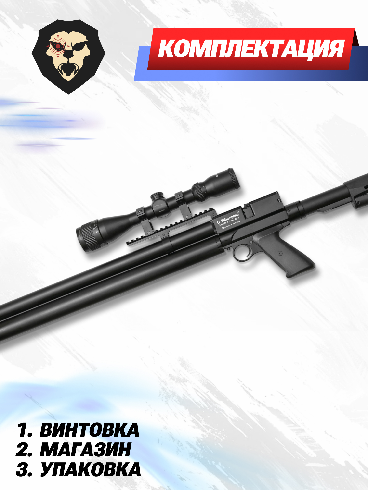 | Комплектация | Винтовка, магазин, набор запасных РТИ, ключ для манометра, упаковка, заправочный штуцер, краткая документация, копия сертификата (по запросу покупателя) |