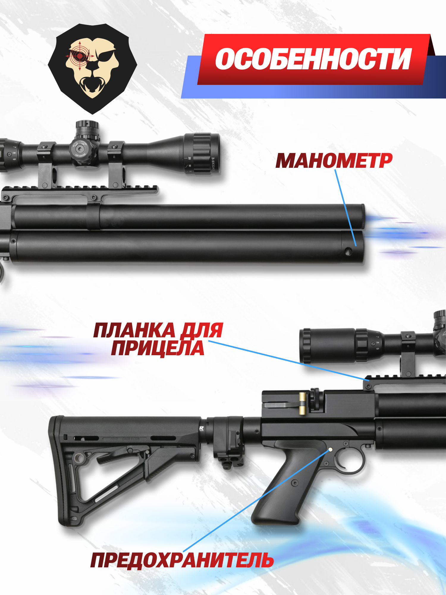 Для удобного отслеживания изменения показателей этого давления изготовители из компании Dobermann предусмотрели встроенный в устройство оружия манометр. Такая PCP пневматика отличается прямоточным механизмом попадания газа из ресивера в ствол винтовки.