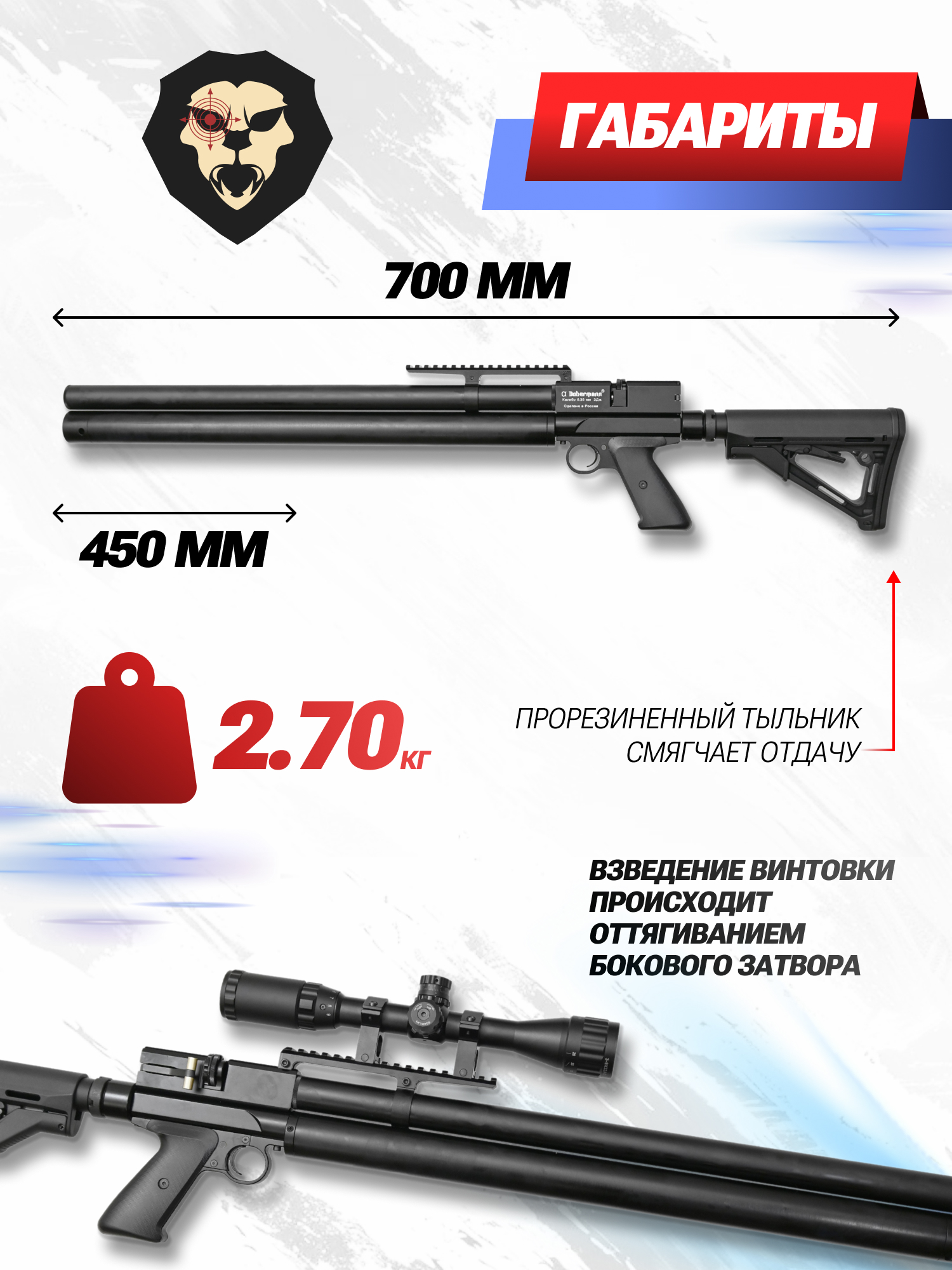 | Размер | 700 мм (без приклада) |